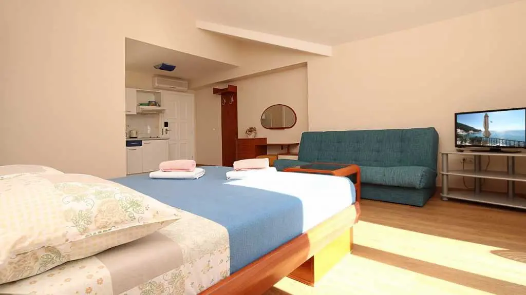 Som du kan se på bilden kan du på stenstranden precis framför huset använda solstolar och njuta av att surfa på internet i skuggan av pinjeträd. Älskare av natur och ensamhet kan finna sin frid på de närliggande avskilda stränderna. Vi erbjuder förfriskningar hela dagen i vår pizzeria, som ligger på husets bottenvåning, och där vi bjuder på vår utmärkta hemgjorda glass. Vi hoppas att du kommer att uppleva en oförglömlig sommarsemester i våra lägenheter. Drveniks geografiska läge möjliggör snabba dagsturer till Split, Medjugorje, Mostar, Dubrovnik, Hvar, Korcula, Biokovo Nature Park - och många mindre, men intressanta och trevliga platser ... Välkommen till Apartments Antunović!