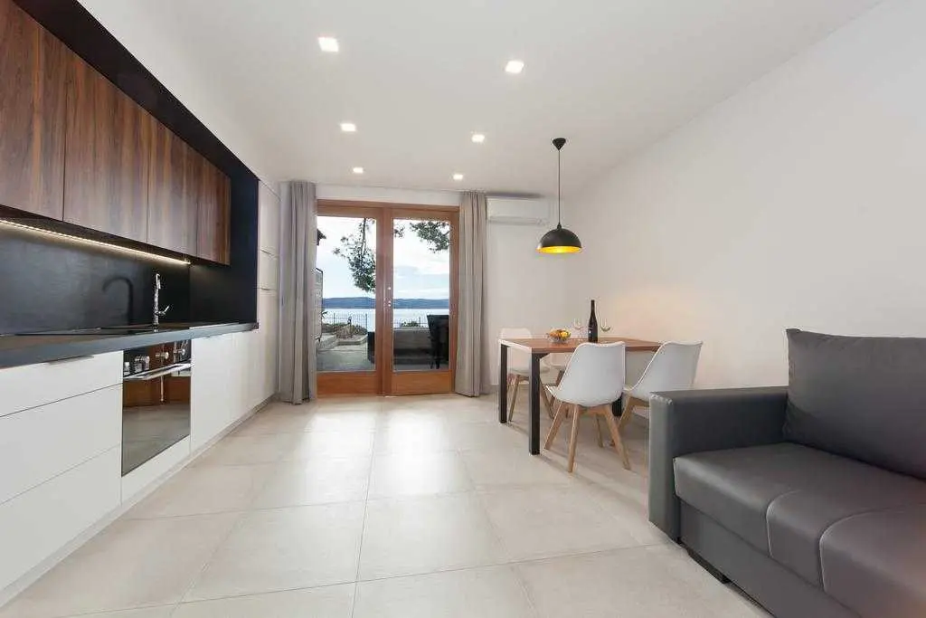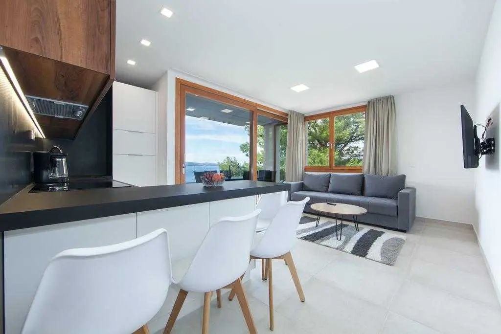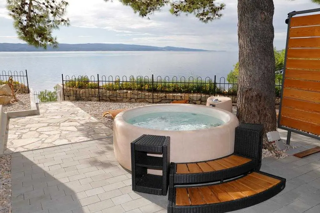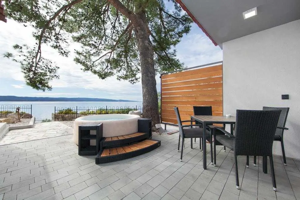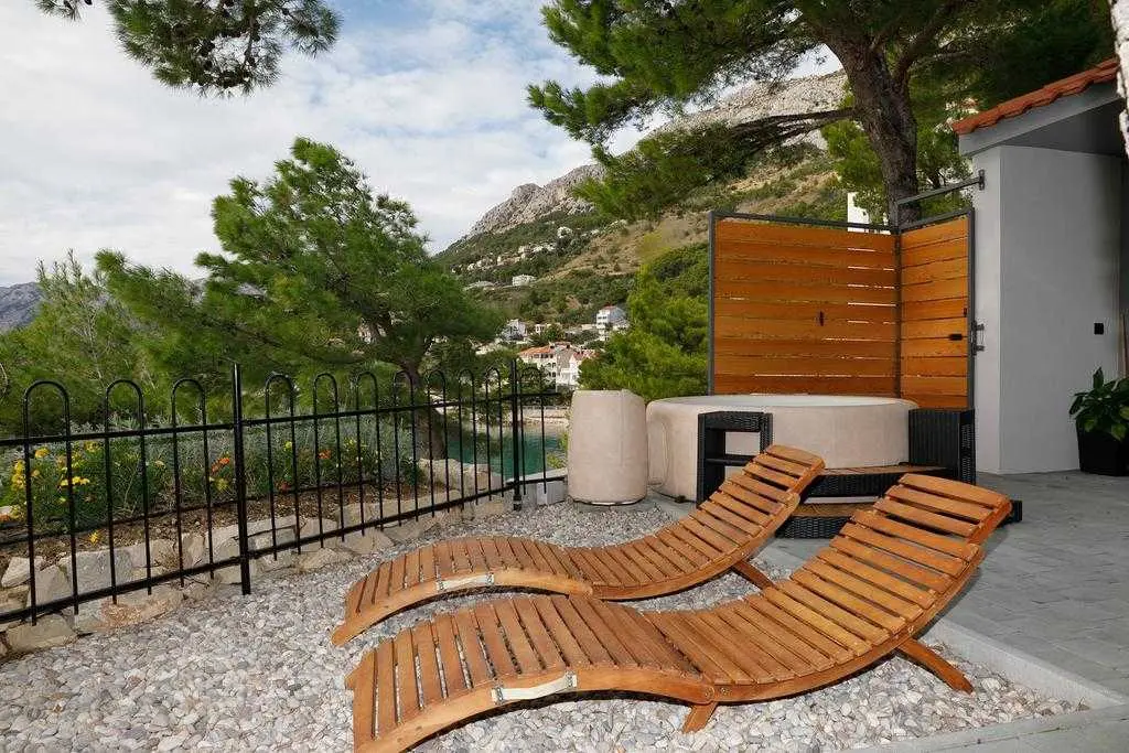 Huset ligger i en lugn del av Brela som heter Scit, precis ovanför stranden, bara 20 m från havet och 1000 m från Brela centrum. I våra lägenheter kan du tillbringa en unik semester. Designerlägenheter med badtunnor. Vi hyr alla typer av cyklar med all utrustning och dykutrustning som gör vårt erbjudande unikt i denna del av Dalmatien. Perfekt läge och fantastisk utsikt ... Välkommen! Tyst del av Brela, med många små stränder, 600 meter från Punta Rata-stranden.