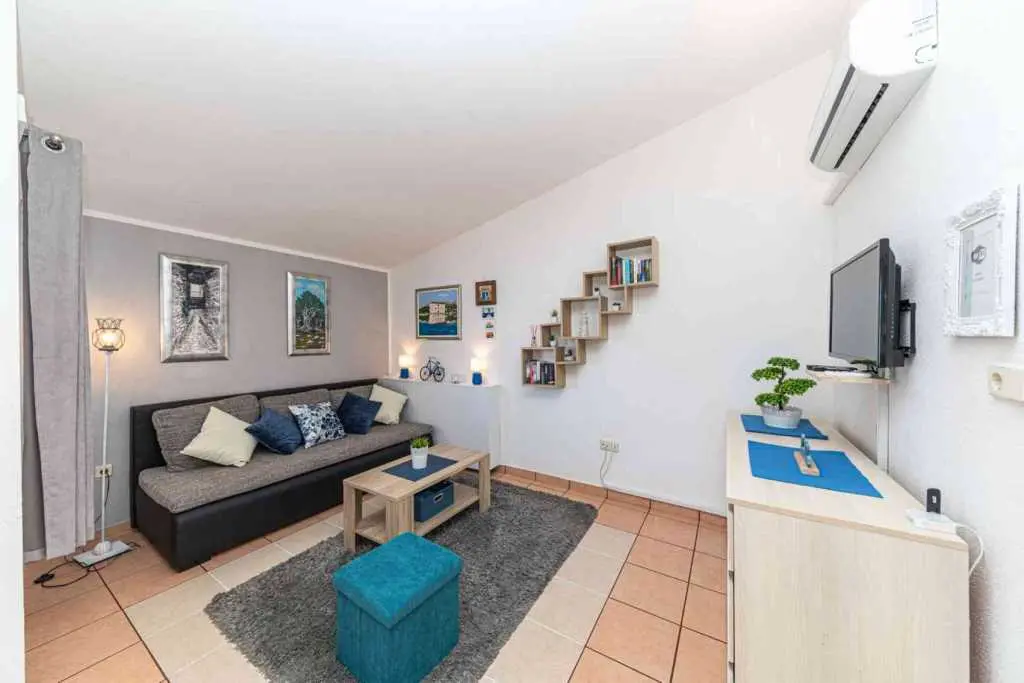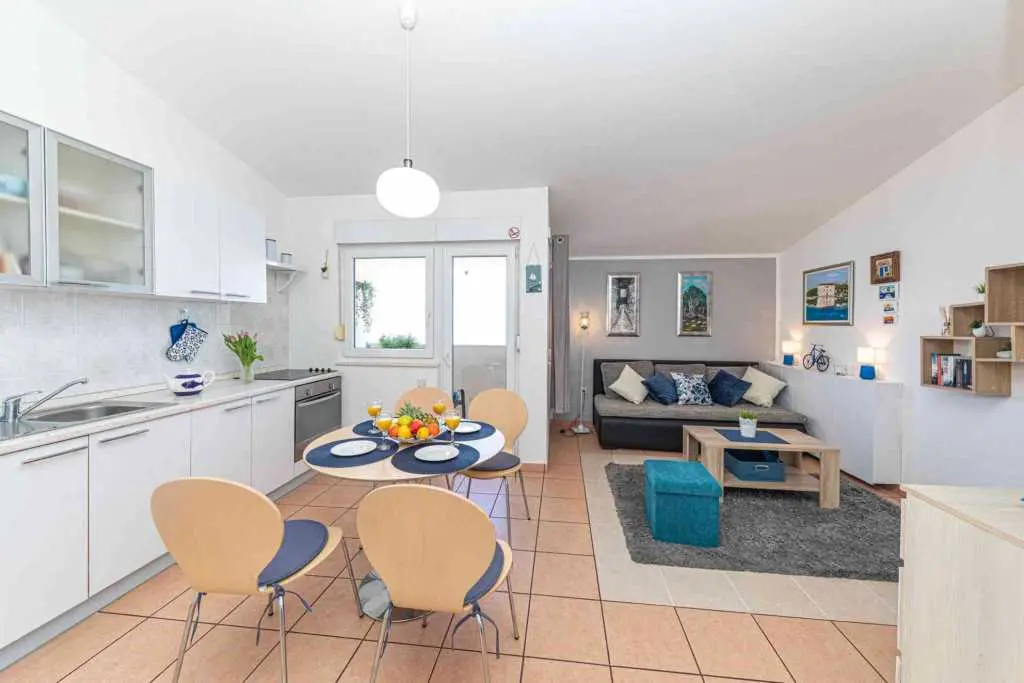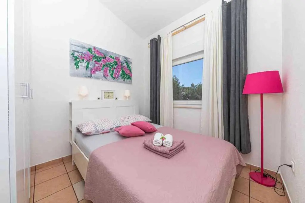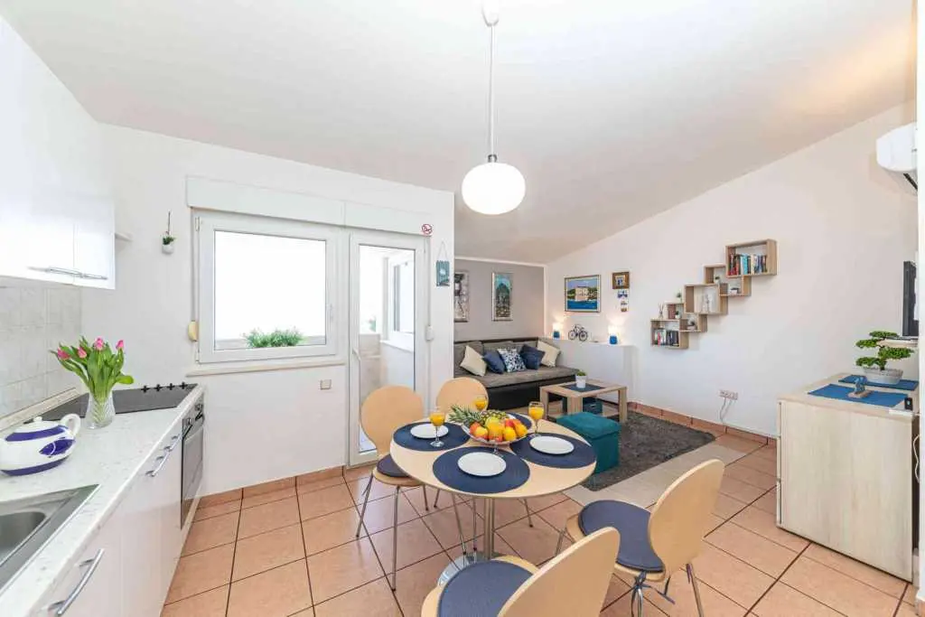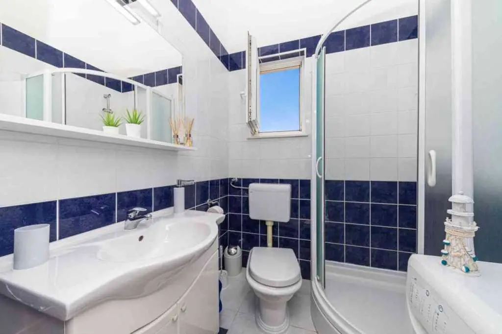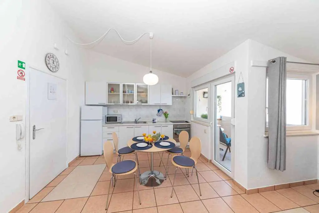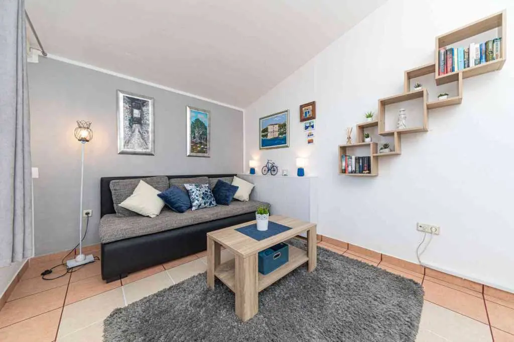 Glavica Lägenheten ligger nära Okrug Gornji by på ön Ciovo. Lägenheten ligger på översta våningen och har blivit tillräckligt utrustad för en vistelse för 2 personer. Boendet består av sovrum med dubbelsäng, badrum med dusch och en tvättmaskin, vardagsrum med luftkonditionering, bäddsoffa för 2 och fullt utrustat kök och en liten balkong med utsikt över havet. Det finns en parkeringsplats ibehind byggnaden.