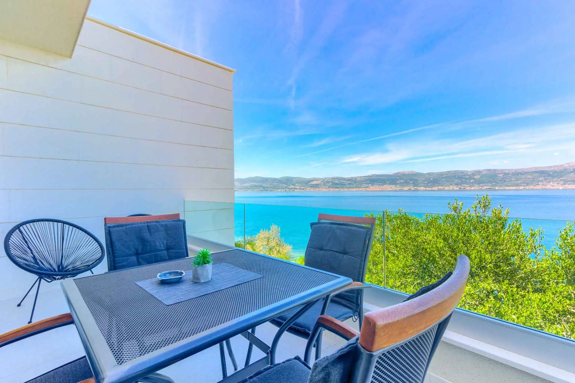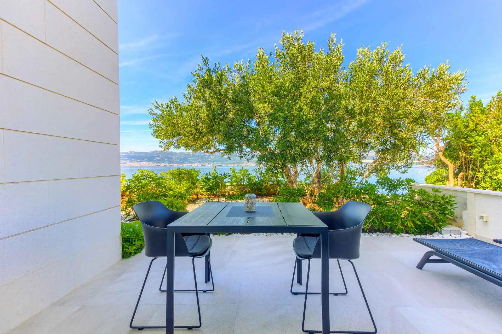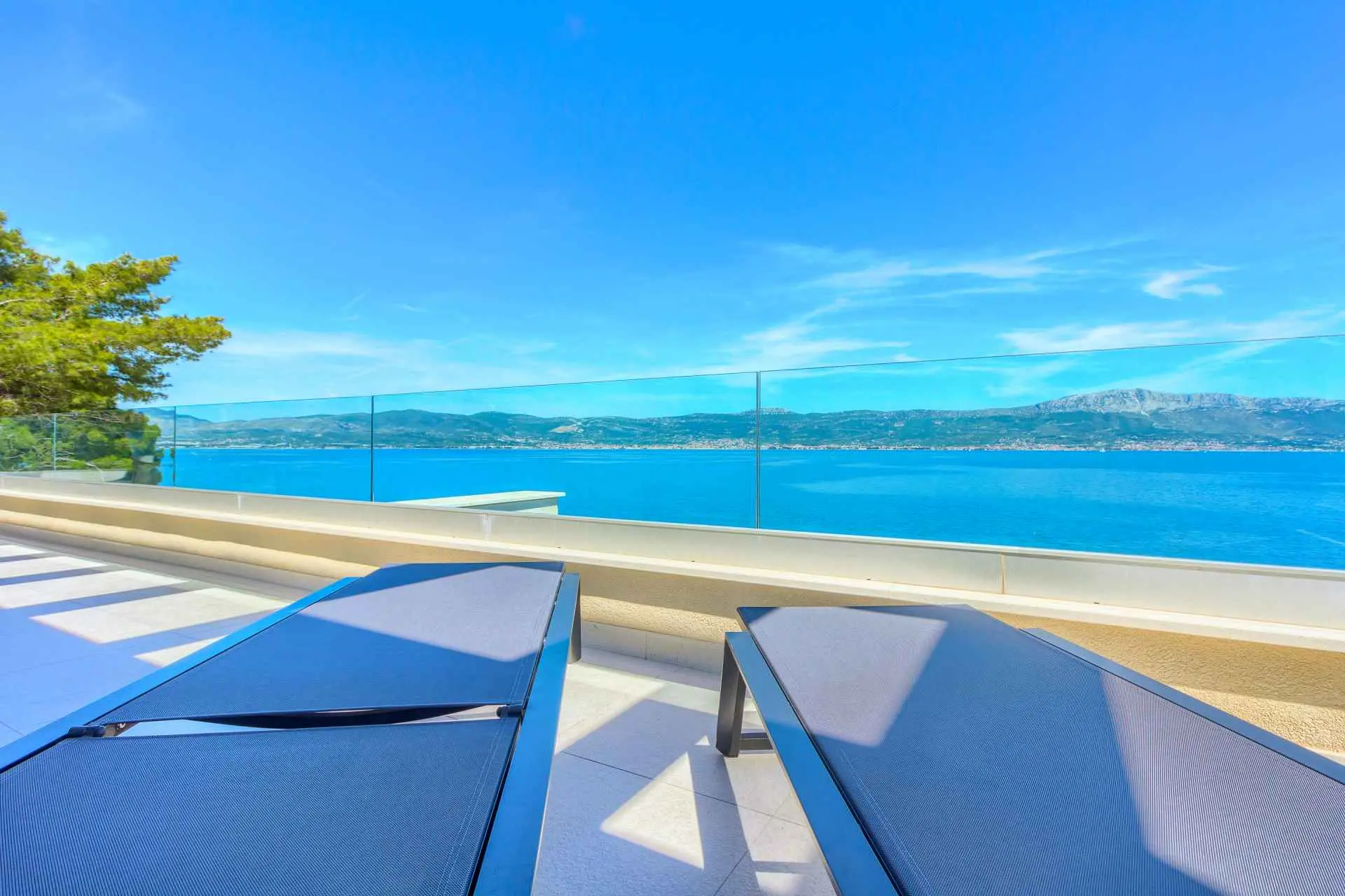 Denna ultra lyxiga villa ligger direkt vid havet i Slatine. Bort från värmen och rörelsen i centrum är detta en villa där du helt kan koppla av och njuta av den rymliga interiören och svalna i det läckra Adriatiska havet direkt från din egen privata strand. Med sex sovrum med dubbelsäng och potential för två att sova på en bäddsoffa kan villan rymma upp till 14 personer. Interiören är modern och elegant. Det finns parkering för upp till fem bilar.
