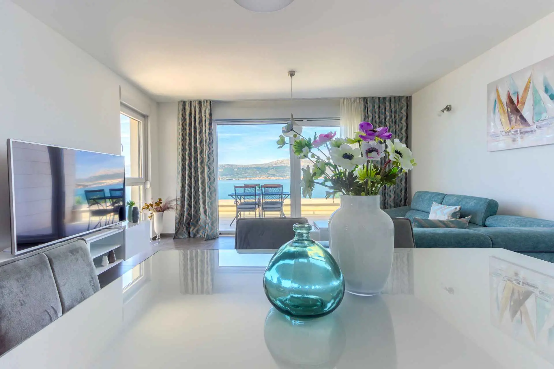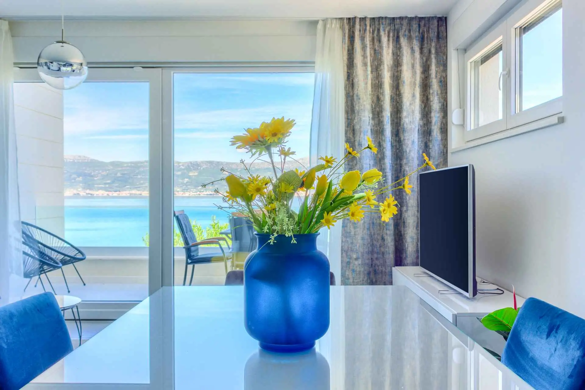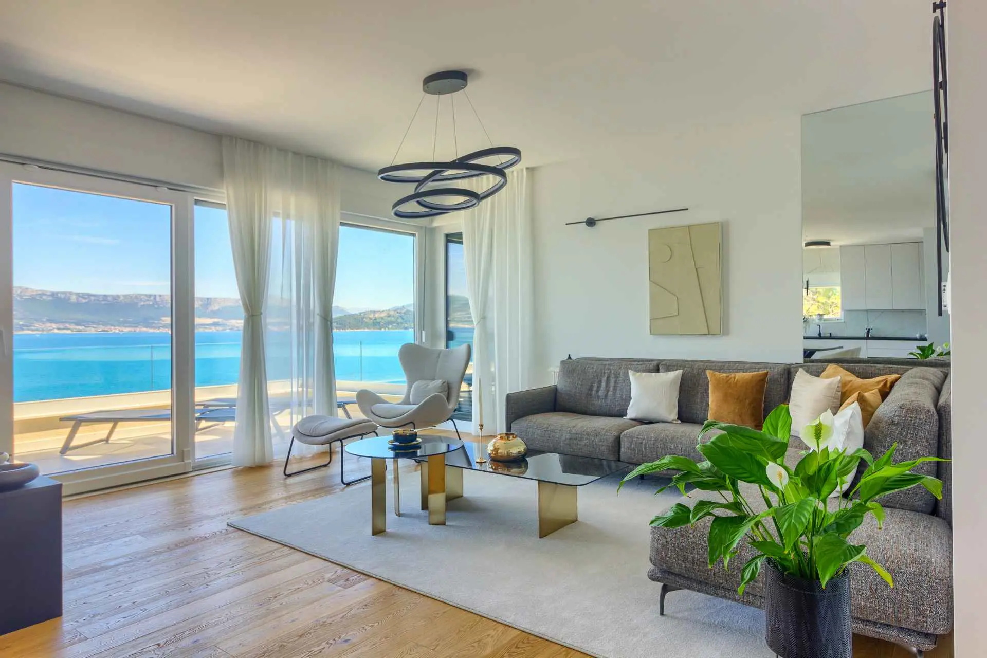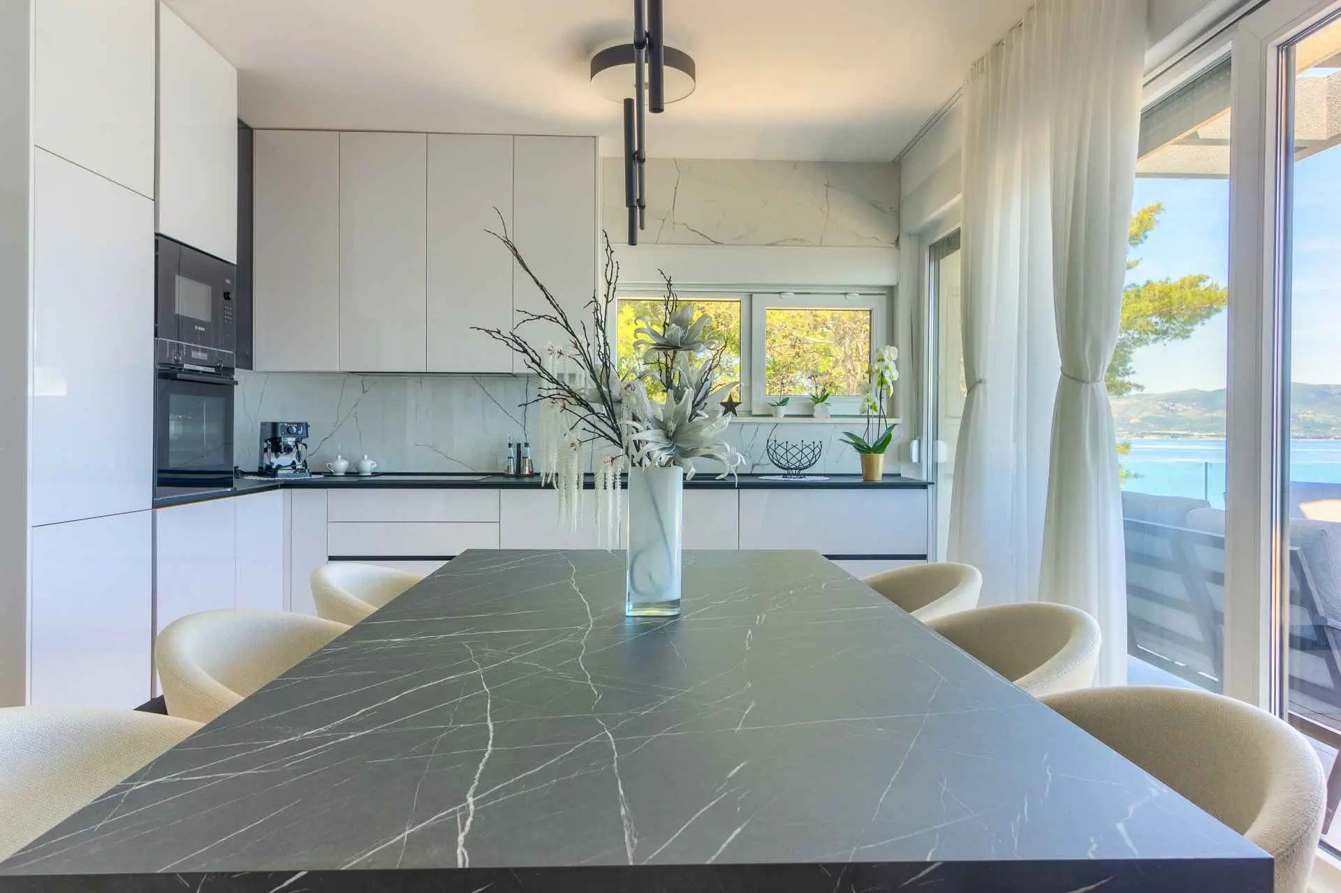 Denna ultra lyxiga villa ligger direkt vid havet i Slatine. Bort från värmen och rörelsen i centrum är detta en villa där du helt kan koppla av och njuta av den rymliga interiören och svalna i det läckra Adriatiska havet direkt från din egen privata strand. Med sex sovrum med dubbelsäng och potential för två att sova på en bäddsoffa kan villan rymma upp till 14 personer. Interiören är modern och elegant. Det finns parkering för upp till fem bilar.