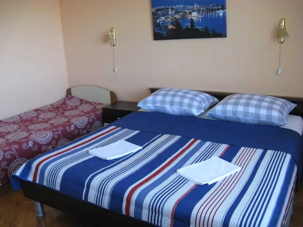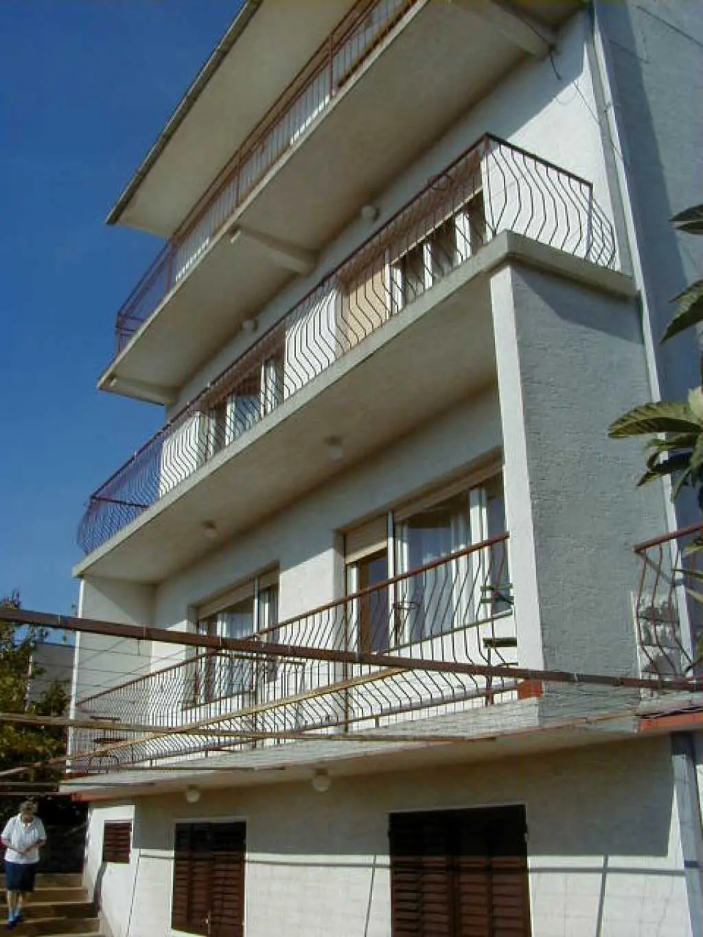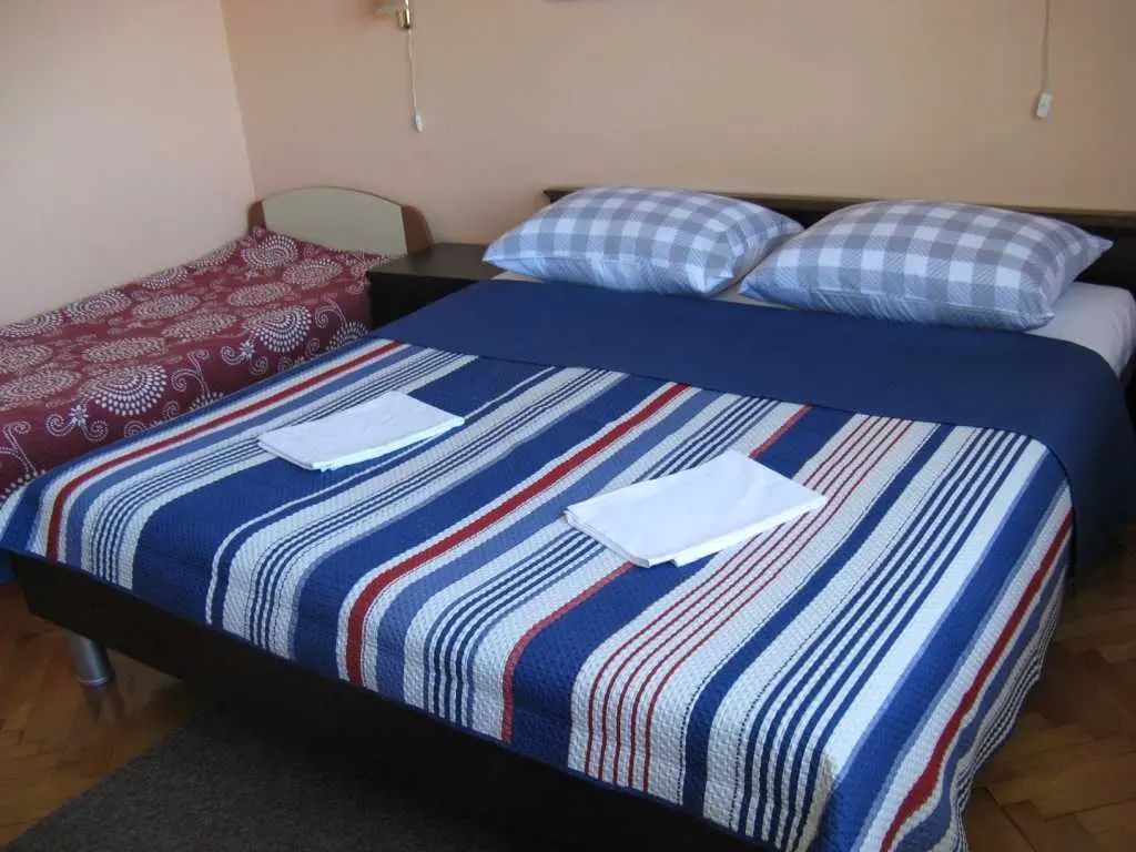 Familjhus med två lägenheter. En mindre lägenhet för 2 till 4 personer ligger på bottenvåningen och har en stor terrass framför. Den större lägenheten för upp till 7 personer ligger på första våningen och har en terrass med bord och stolar på sidan. Det finns en grillplats i trädgården. Lägenheten ligger nära havet. Turister går till stranden. Vi har vår egen parkering, bilar är inte på väg. Lägenheterna är stora och bekväma, men möblerna är fortfarande lite äldre. Vi försöker hålla allt rent och snyggt och vi ger varje ny turist rent och strykt sängkläder - lakan och örngott.