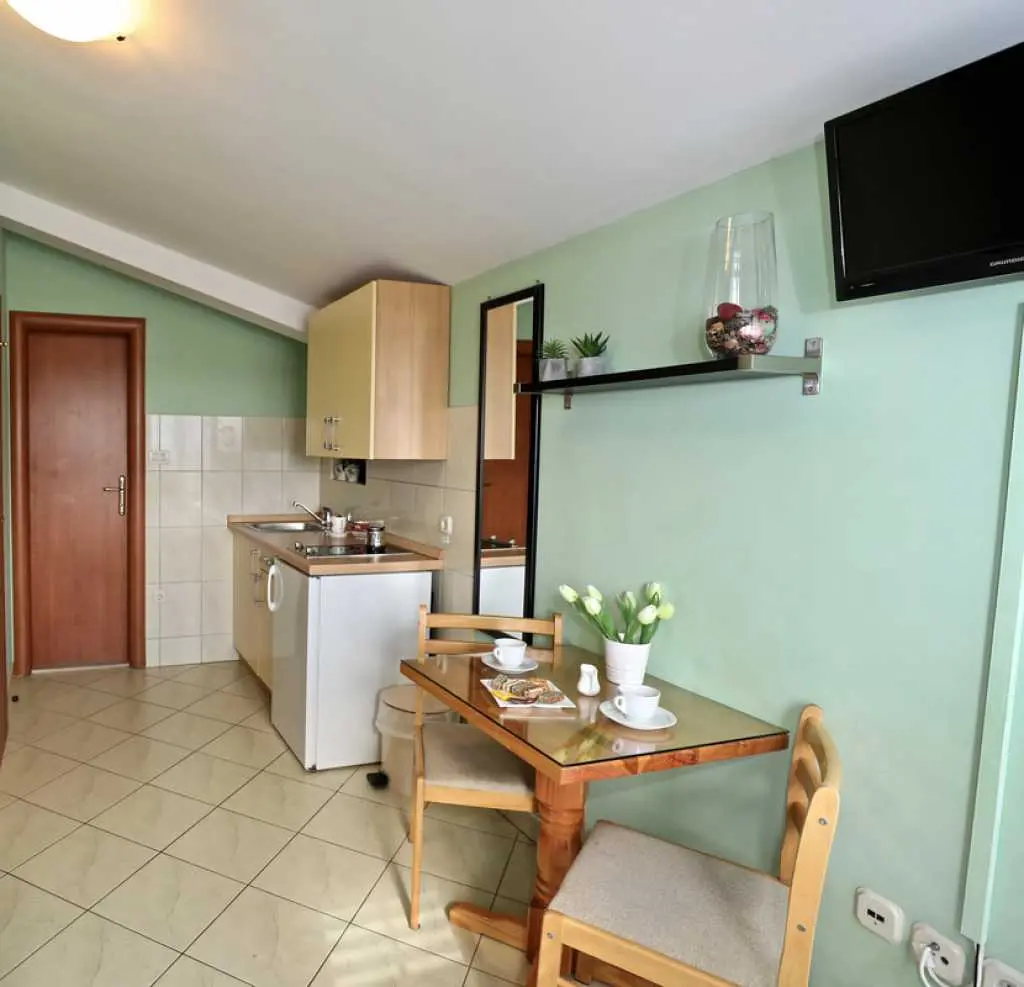 IDA lägenheter ligger i en lugn del av Sucuraj. Vi har 4 studior för 2 personer, 3 studiolägenheter för 3 personer, 1 stor lägenhet för 4-6 personer. Studio lägenheter har 1 extrasäng. Alla har kök, badrum, luftkonditionering, TV, balkong och trådlöst internet. Sucuraj är intressant eftersom det har många cykelleder. Sucuraj på toppen av ön, omgiven av havet så det finns massor av stränder och vikar för att simma alla vikar är tillgängliga med cykel och bilar. Från fastlandet är det bara 30 min. färjetrafik så det är mycket billigare att resa. Lägenheterna är från närmaste strand är ca 150 m, liksom till stadens centrum. Stranden är en kombination av grus och sand är idealisk för barn. I byn finns många turistfartyg som organiserar resor med picknick på närliggande öar och Makarska Riviera, och nära Dubrovnik och Medjugorje.