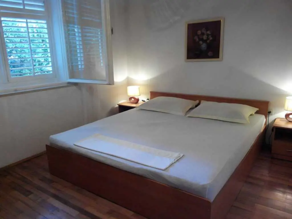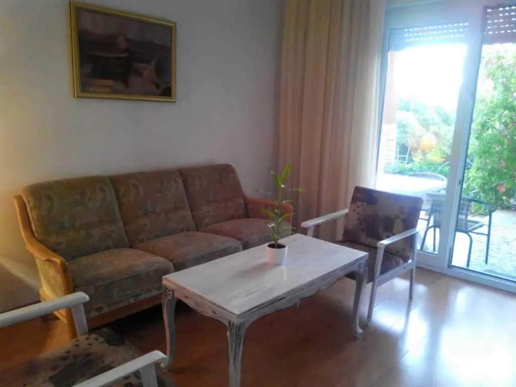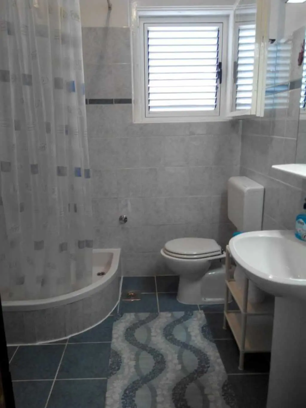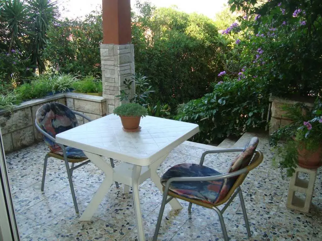 Lägenheten ligger på första våningen i familjehuset. Ett sovrum med dubbelsäng, vardagsrum med soffa för en eller två personer. TV, satellit-TV, internet och luftkonditionering. Vardagsrummet har utgång på en terrass med möbler för sittande. Medelhavet trädgård med grill, bänkar och bord. Kök med mikrovågsugn, kaffebryggare, kylskåp och all annan personal och apparatur för kök. Badrum med dusch. Privat inhägnad parkering bakom huset.