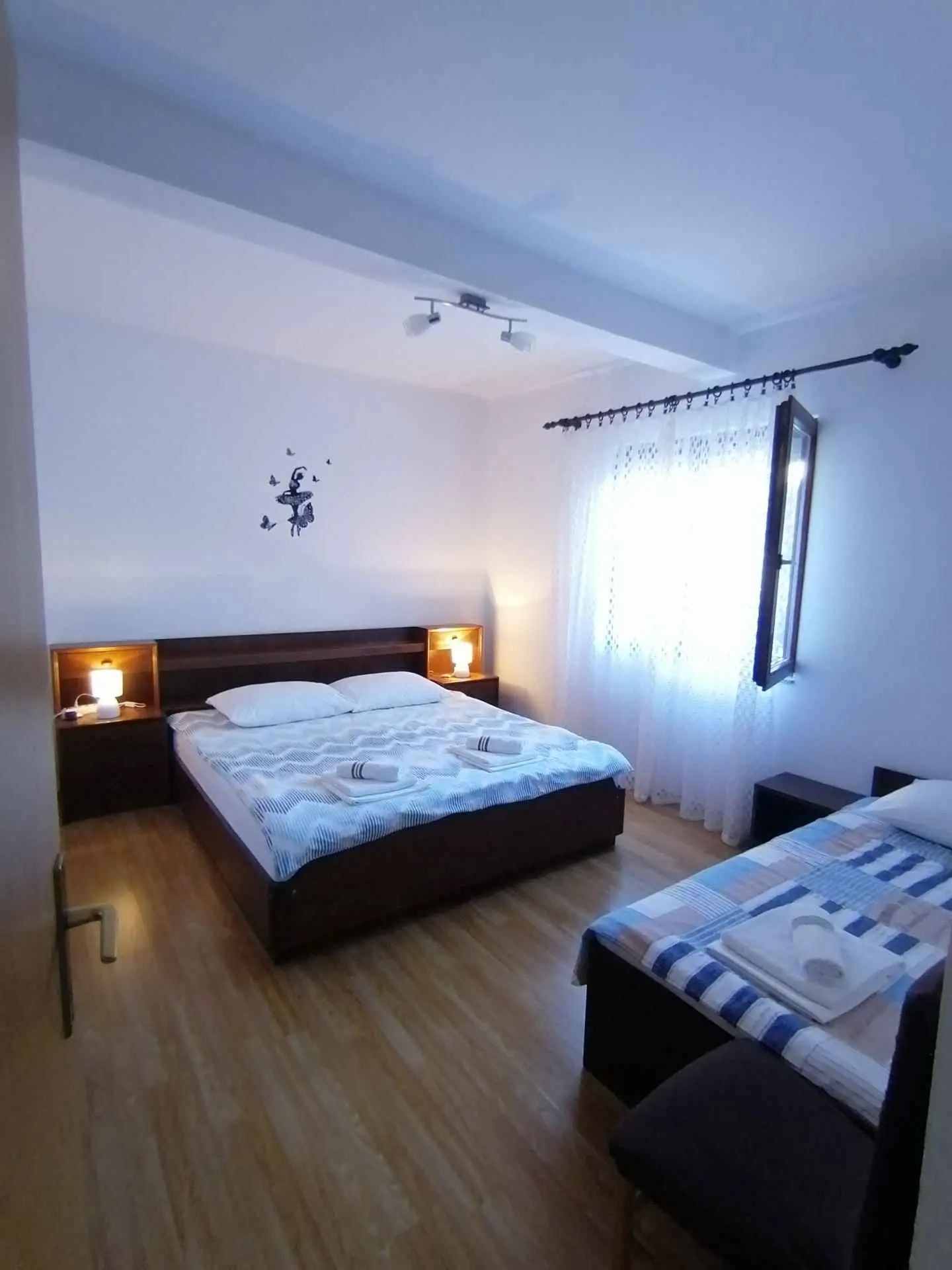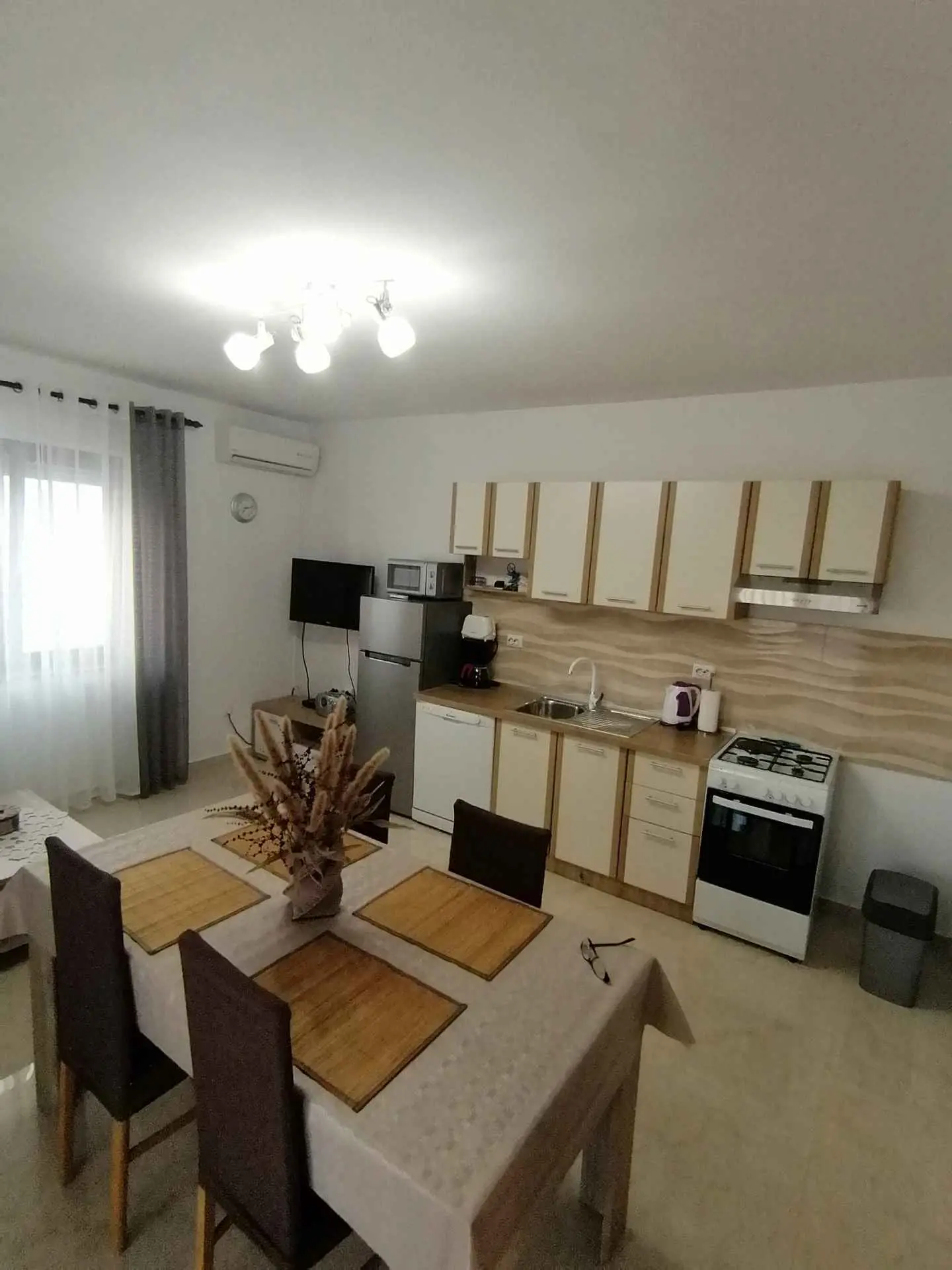 En fullt utrustad ettrumslägenhet ligger i centrala Maslenica, i första raden mot havet. Parkering på egen gård. Stranden ligger 30 meter från byggnaden, och inom en radie av 150 meter finns en restaurang, en cafébar, en strand med utsikt över Maslenički-bron, uthyrning av utrustning för olika vattensporter och en utflyktsbåt, en butik 20 meter från byggnaden. Paklenica National Park 10 km, Zrmanja Canyon 3 km, Velebit Nature Park 10 km, Plitvička jezera National Park 90 km, Krka National Park 77 km.