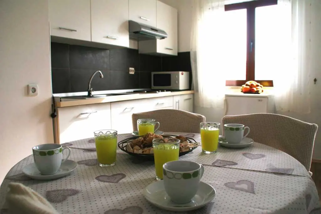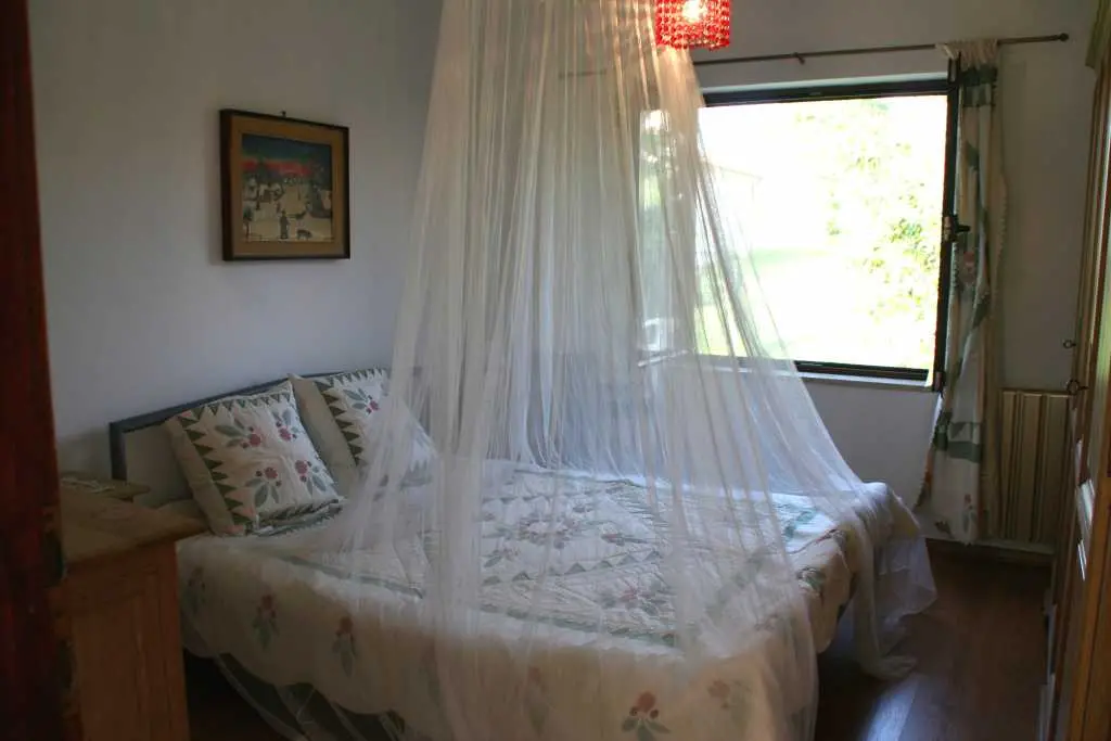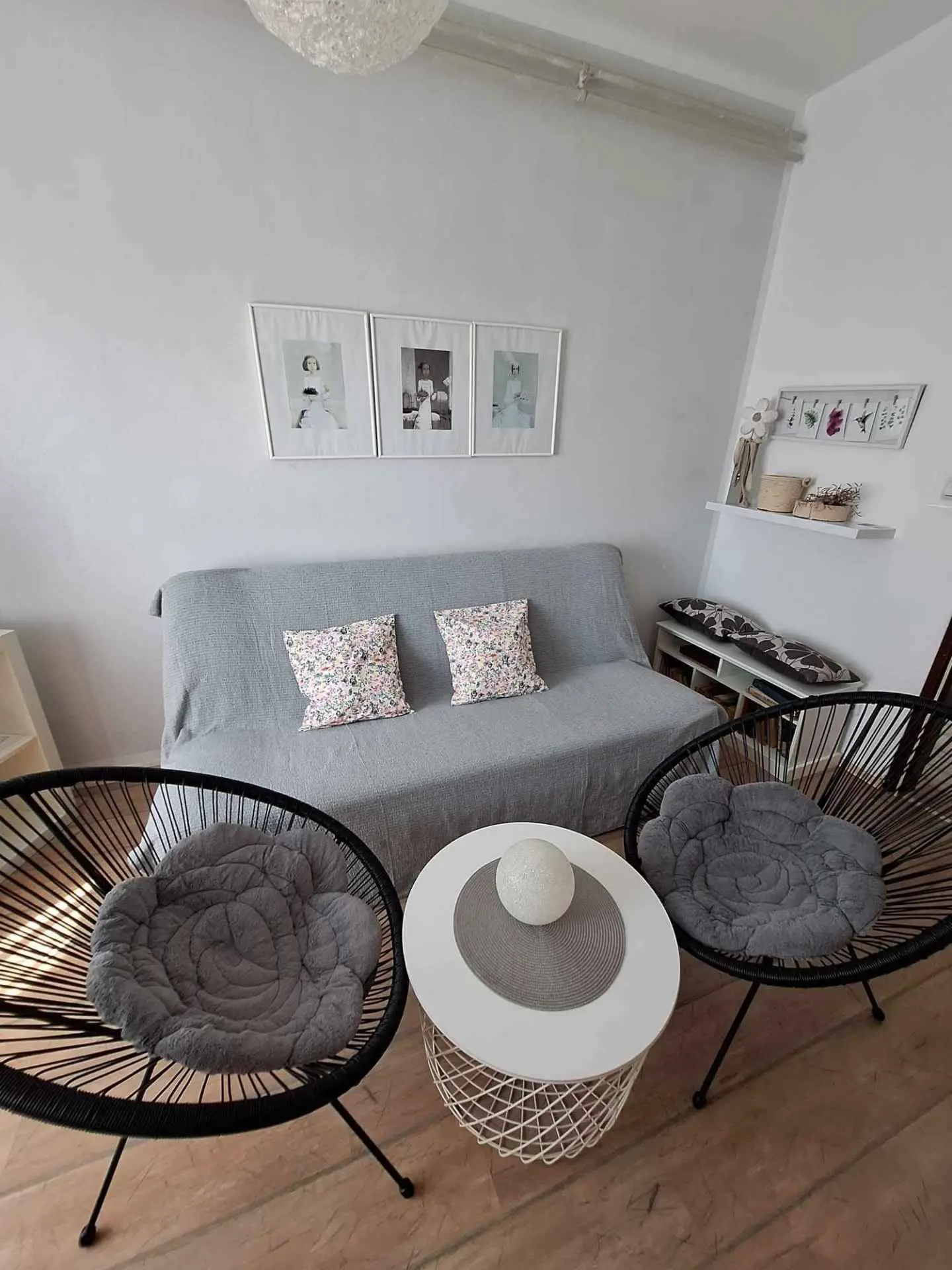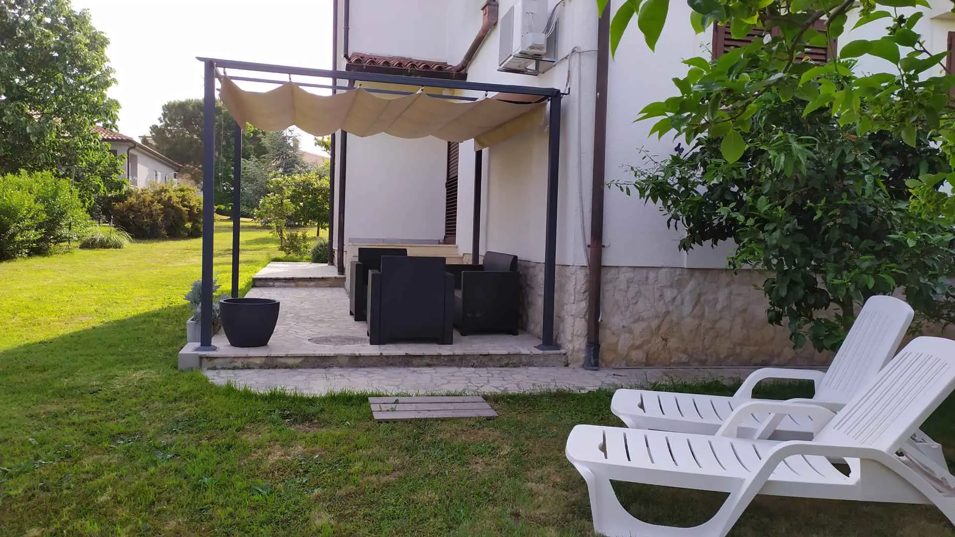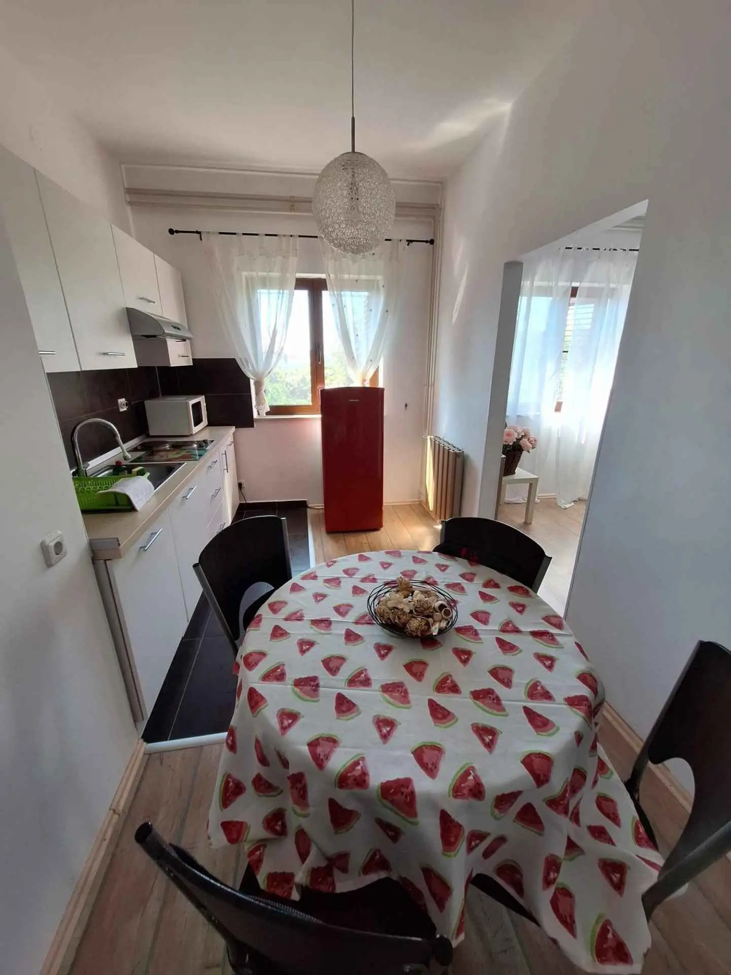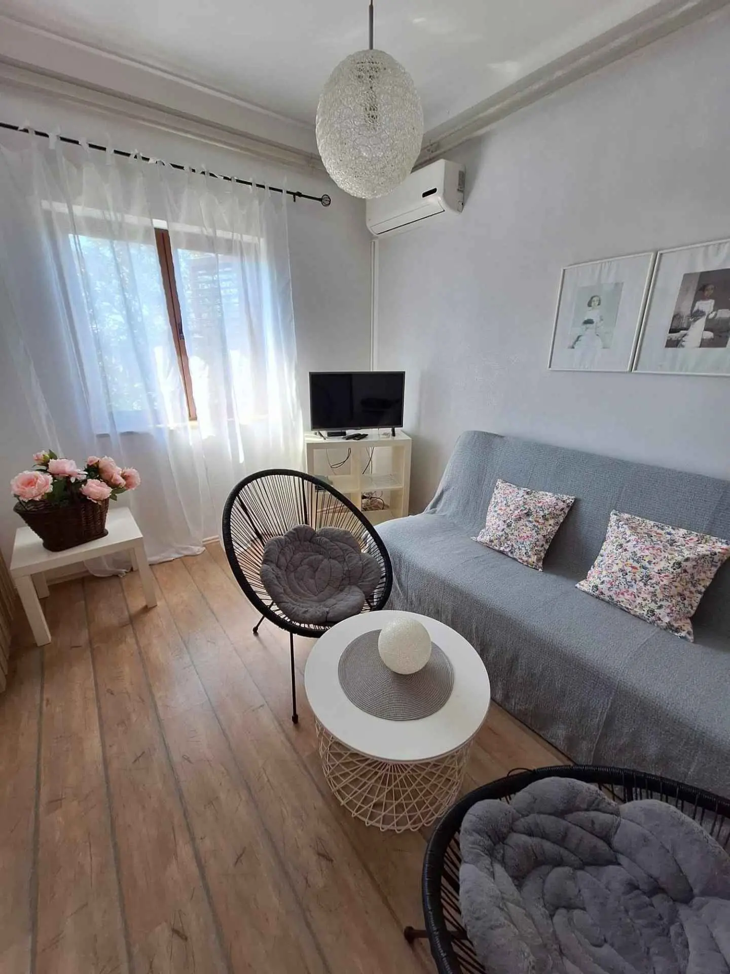 Lägenheten har ett sovrum med dubbelsäng, ett vardagsrum med bäddsoffa, utrustat kök och stort badrum. Lägenheten har en terrass med en stor gård. Parkering är privat, och närmaste strand ligger 300 m bort. Välkommen!