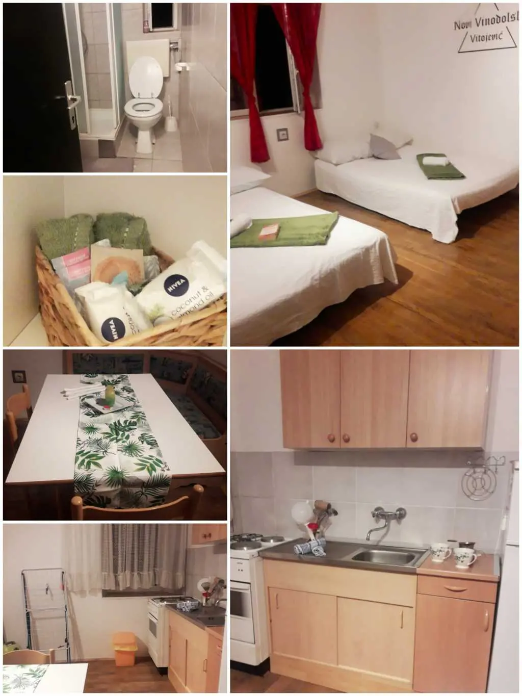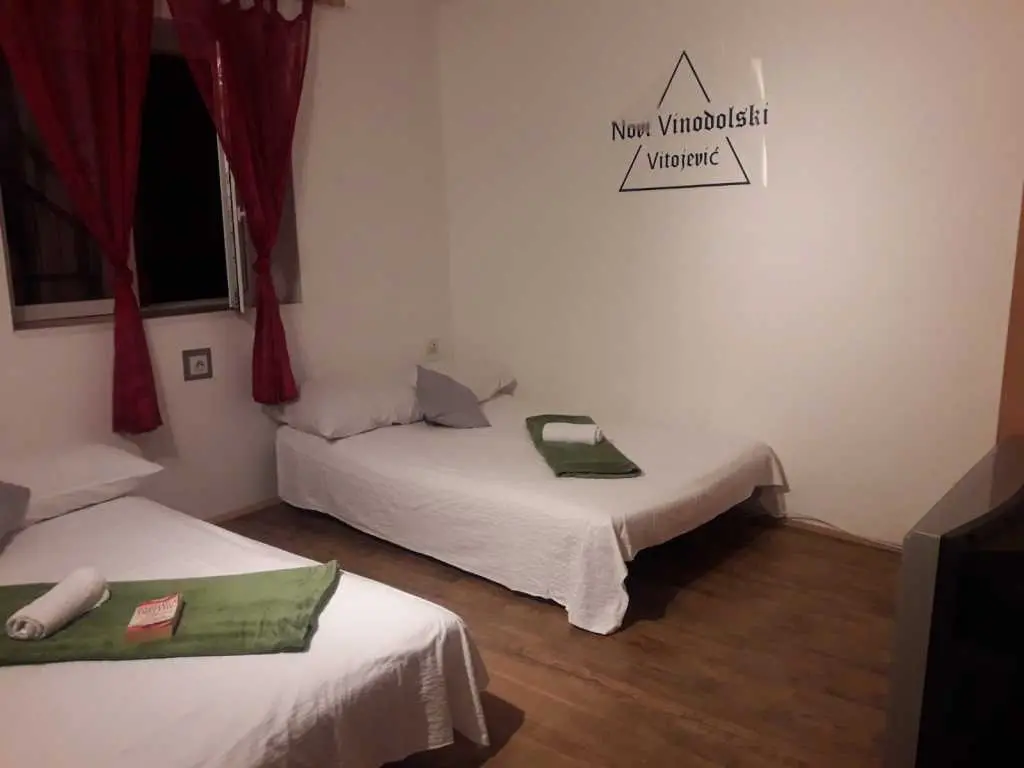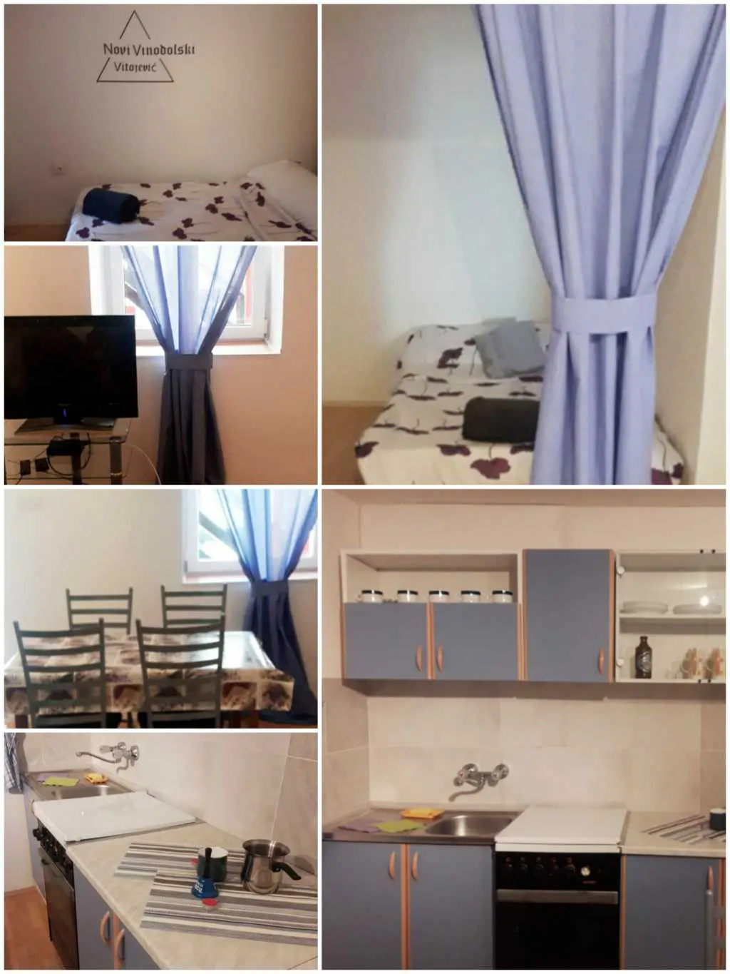 Två lägenheter i centrum av nya Vinodolski, 2 + 2, med balkong, i ett gammalt stenhus. Den nedre lägenheten är en studiolägenhet, den övre lägenheten ett sovrum. Husdjur tillåtna, parkering och turistskatt ingår i priset. Nära stranden ligger en 7 minuters promenad. I närheten har de alla nödvändiga faciliteter för en bekväm vistelse. Lämpliga lägenheter för ungdomar på grund av närheten till underhållningsanläggningar, restauranger, vattenskidor och för barn, för på 7-10 minuters promenad finns en betong-, sten- eller sandstrand, med alla bekvämligheter för barn och tallar en skog som ger ett särskilt nöje medan solen brinner ute. Intressant är själva stadskärnan som ger många möjligheter till promenader och cykelturer, det finns stränder för hundar i närheten, som ägarna också kan njuta av.