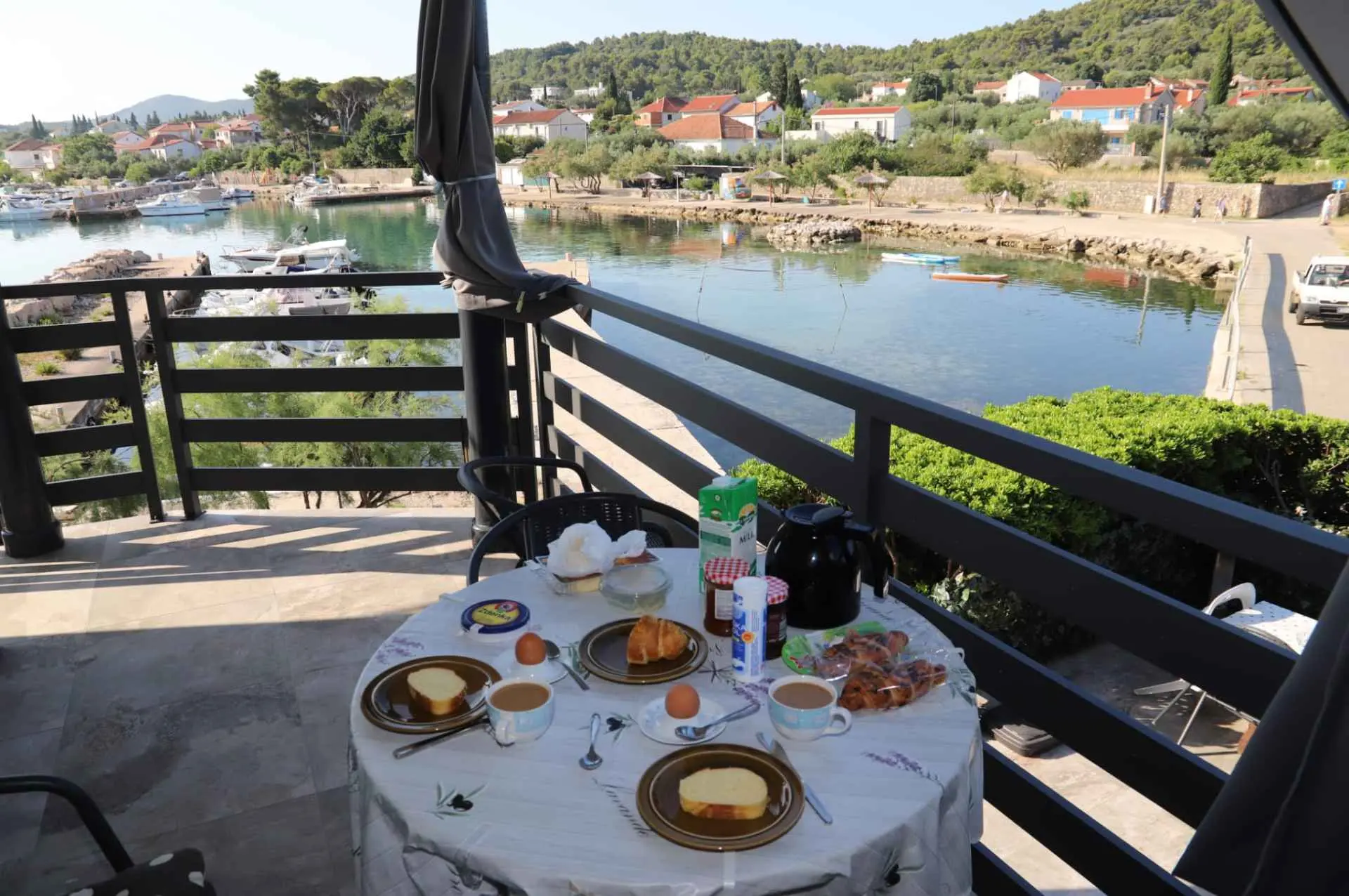 Lägenheten för 4 personer ligger på första våningen i huset. Ytan är 75m2 och består av: kök, matsal och vardagsrum i ett rum, 2 separata dubbelrum, badrum och terrass. Lägenheten är luftkonditionerad.