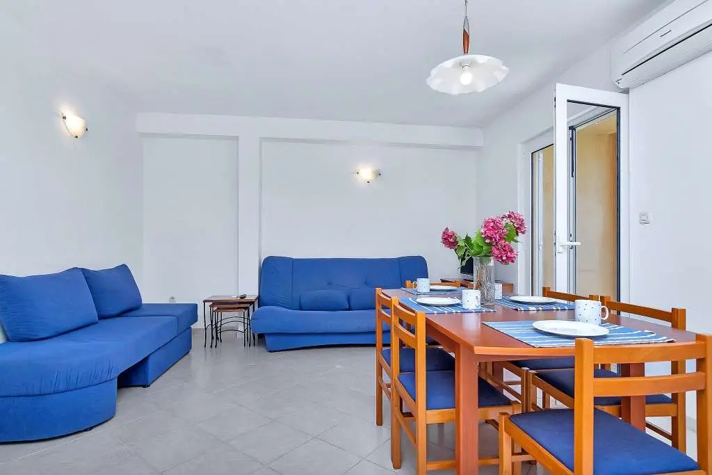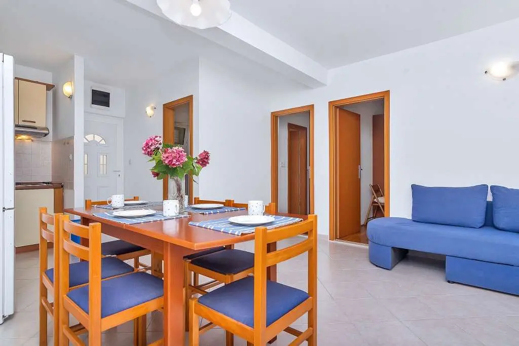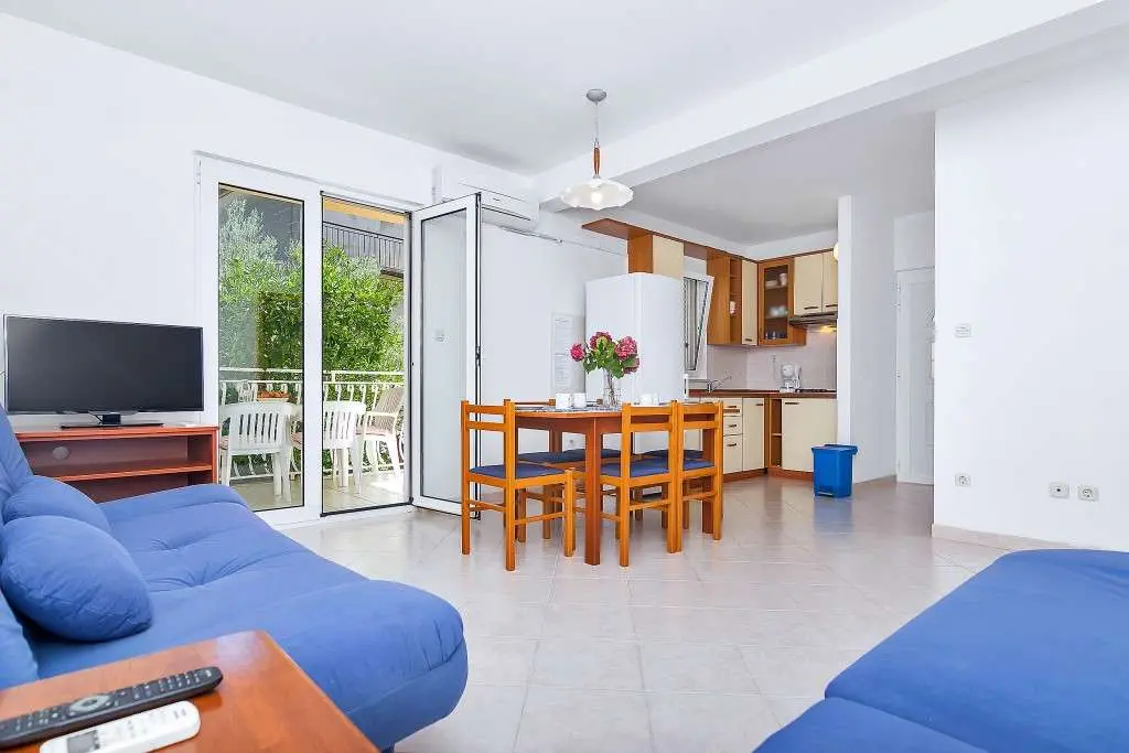 Lägenhet bult i 2001 Beläget vid avfarten från Podgora. Lägenheten ligger på marken Golv och är modernt inredda. I närheten finns olivträd och bredvid Balkongen är ett apelsinträd Det ger Fresh AIR och när Temperaturerna är höga.