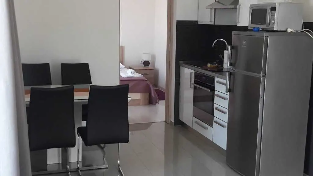 Lägenheten och studiolägen Sunset ligger 100 m från havet och ligger på plats Dolac, 3 km från centrum av Primošten. Lägenhet A (2 + 2) och studio A2 ligger på sista våningen i huset och har en underbar havsutsikt. Lägenhet A (2 + 2) består av ett sovrum, kök med matplats, vardagsrum med bäddsoffa och badrum. Denna lägenhet har en stor terrass med utsikt över havet. Studio A 2 består av ett sovrum, ett kök med en matsal och ett badrum. Studion Lägenheten har en balkong med utsikt över havet. Parkering är gratis och ligger i gården av huset.
