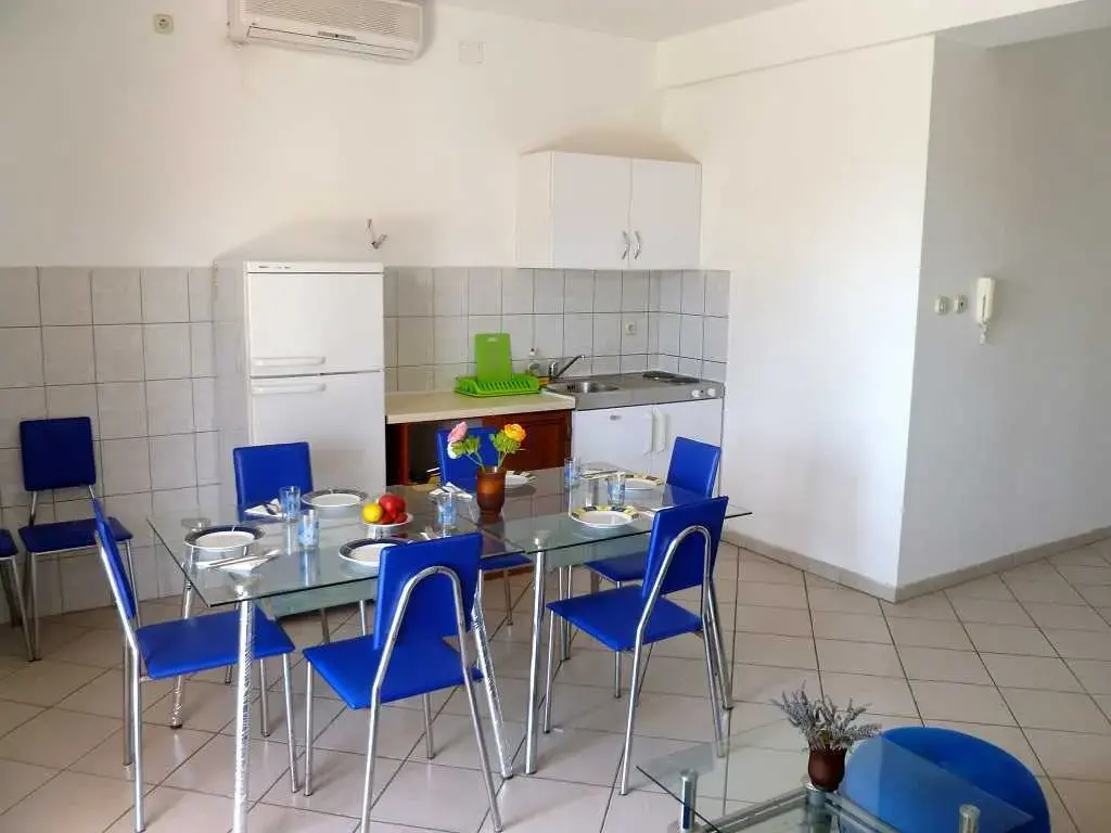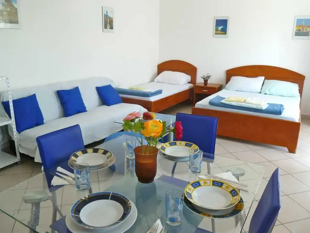 I Medelhavets vackra atmosfär, där naturen har målat en av de vackraste delarna av Adriatiska havet, ligger staden Primosten, som inrymmer Villa Maria. Villa Maria Apartments ligger i centrum av Primosten, 50 till 100 meter från de vackra stränderna (sten och klippor). På toppen finns en stor terrass med utsikt över Primosten och stranden. Primosten är en av de mest kända turistorterna i Dalmatien, och en av de mest pittoreska små städerna vid Adriatiska havet, med många karakteristiska smala gator i gamla stan på en kuperad halvö. I vår anläggning erbjuder vi privat boende i åtta studiolägenheter (3 + 1) och två tvårumslägenheter (6 + 2): alla modernt utrustade och kategoriserade med tre stjärnor, vilket ger dig en bekväm och bekväm semester. Alla lägenheter är luftkonditionerade, med kök, kylskåp, satellit-TV, båtar med havsutsikt. Studiolägenheter har tre bäddar + extra, två stora lägenheter har sex bäddar + två extra. Varje lägenhet har sin egen parkeringsplats. Butiker, post, bank, bageri och butiker finns inom 100 meter.