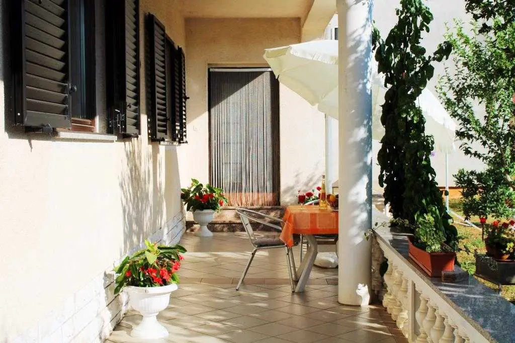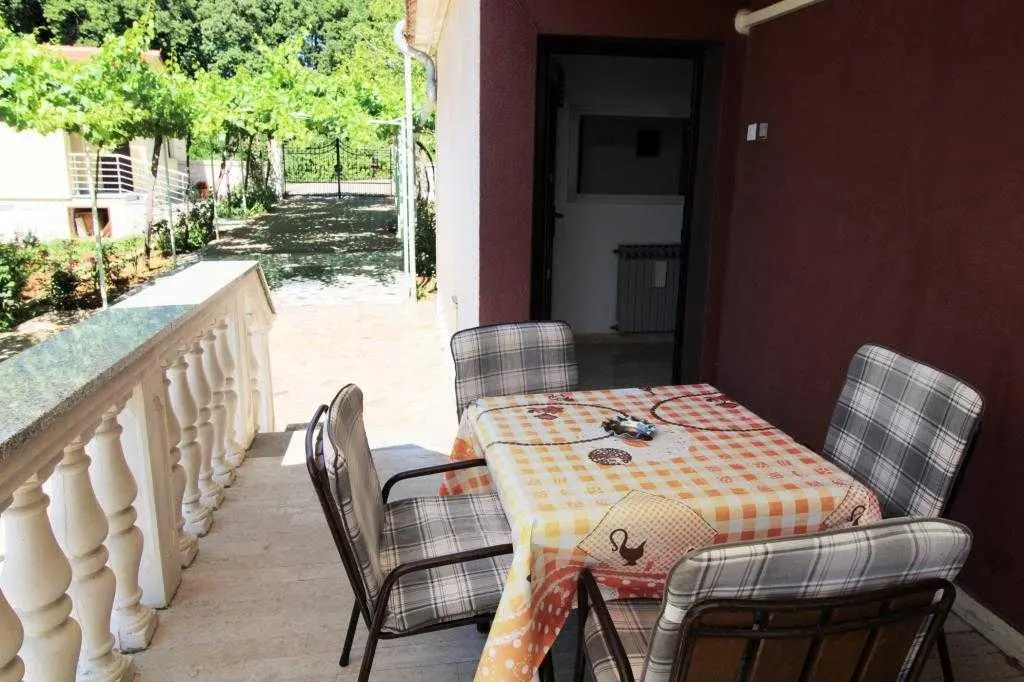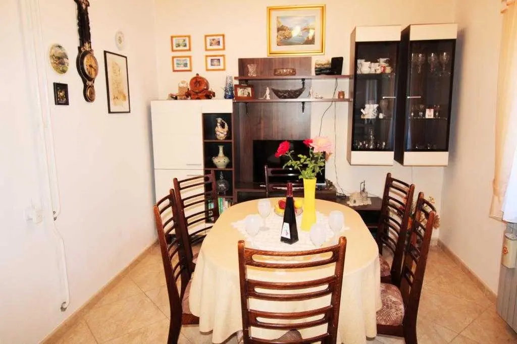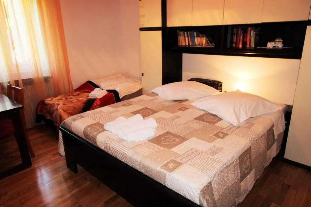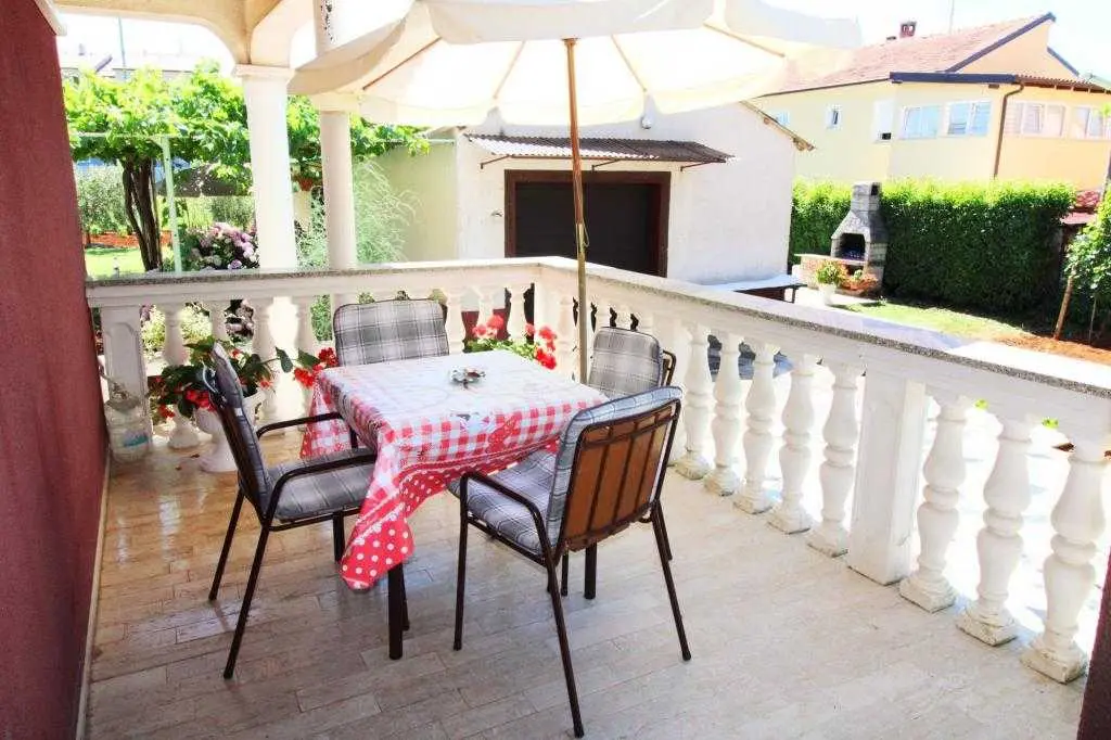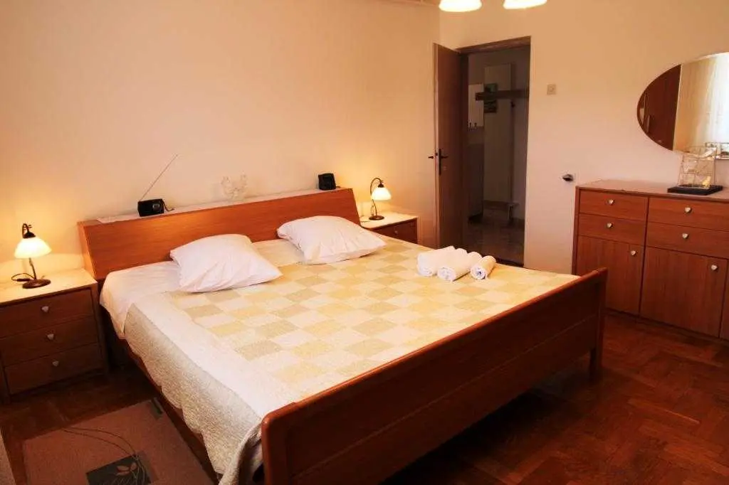 House Maria ligger i Pula. Den består av två lägenheter, en för fyra till fem personer och en studiolägenhet för två personer. För fyra till fem personer som består av två dubbelrum, ett rum har en bäddsoffa, ett kök med matplats, satellit-TV, badrum, terasa. Ligger på marken. Studiolägenhet som kan rymma upp till två personer, bestående av ett sovrum med dubbelsäng, kök, satellit-TV, luftkonditionering, badrum, terrass. Ligger på bottenvåningen. Stor och inhägnad innergård med skuggade vinrankor, är den idealiska platsen för din bil. Vem vill besöka alla stränder, staden Pula och hela Istrien, detta hus är det perfekta valet! Ligger halvvägs. Ägaren bor på första våningen.