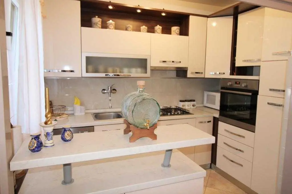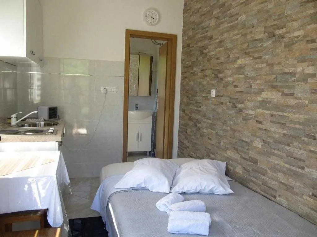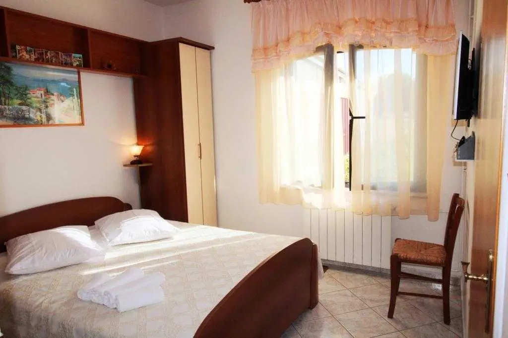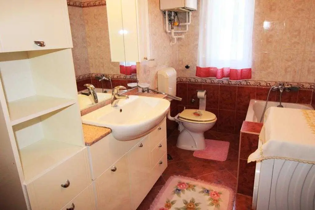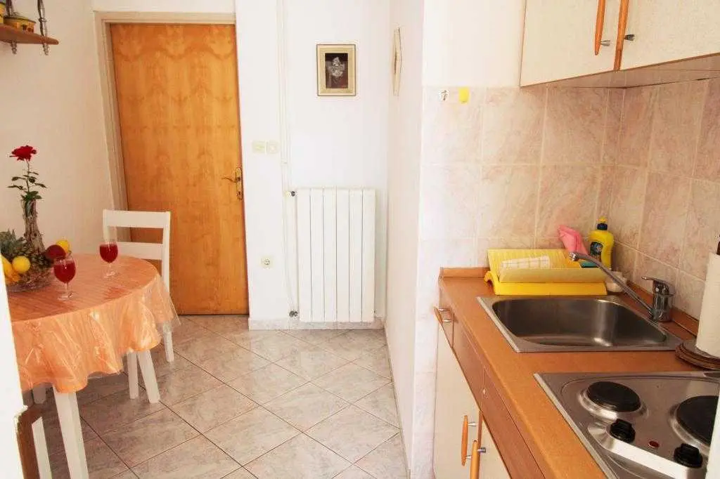 House Maria ligger i Pula. Den består av två lägenheter, en för fyra till fem personer och en studiolägenhet för två personer. För fyra till fem personer som består av två dubbelrum, ett rum har en bäddsoffa, ett kök med matplats, satellit-TV, badrum, terasa. Ligger på marken. Studiolägenhet som kan rymma upp till två personer, bestående av ett sovrum med dubbelsäng, kök, satellit-TV, luftkonditionering, badrum, terrass. Ligger på bottenvåningen. Stor och inhägnad innergård med skuggade vinrankor, är den idealiska platsen för din bil. Vem vill besöka alla stränder, staden Pula och hela Istrien, detta hus är det perfekta valet! Ligger halvvägs. Ägaren bor på första våningen.