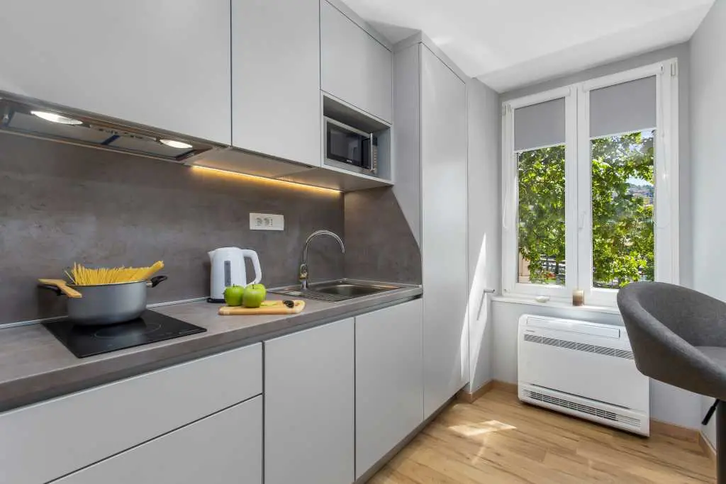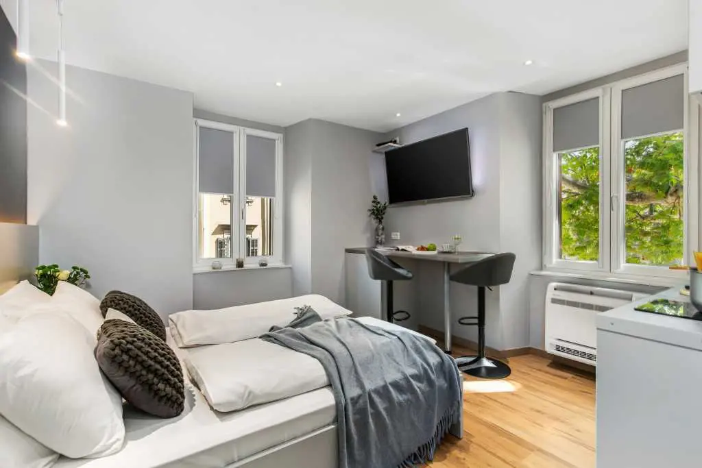 Boende i Rijekas centrum - Lägenheter att hyra Rijeka SJÄLVINKRING med PIN-kod (digitalt lås) Gratis parkering (tillval) Två nya, modernt inredda studiolägenheter ligger i centrum av Rijeka. Varje studiolägenhet har 1 sovrum med en rymlig säng och ett fullt utrustat kök med sittgrupp och eget badrum med dusch och hårtork. Lägenheterna har diskmaskin, kylskåp, mikrovågsugn, vattenkokare och kaffebryggare. Lägenheterna är luftkonditionerade. Varje lägenhet har en stor platt-TV med IPTV och gratis höghastighets WI-FI, Netflix. Omgivande belysning ligger i lägenheterna. Rabatt i 3 eller fler dagar! Lägenheter Google virtuell rundtur 360: https://incenter.com.hr/ fb.me/incenter.apartments https://g.page/incenter-apartments-rijeka?gm https://incenterbooking.book.rentl.io/