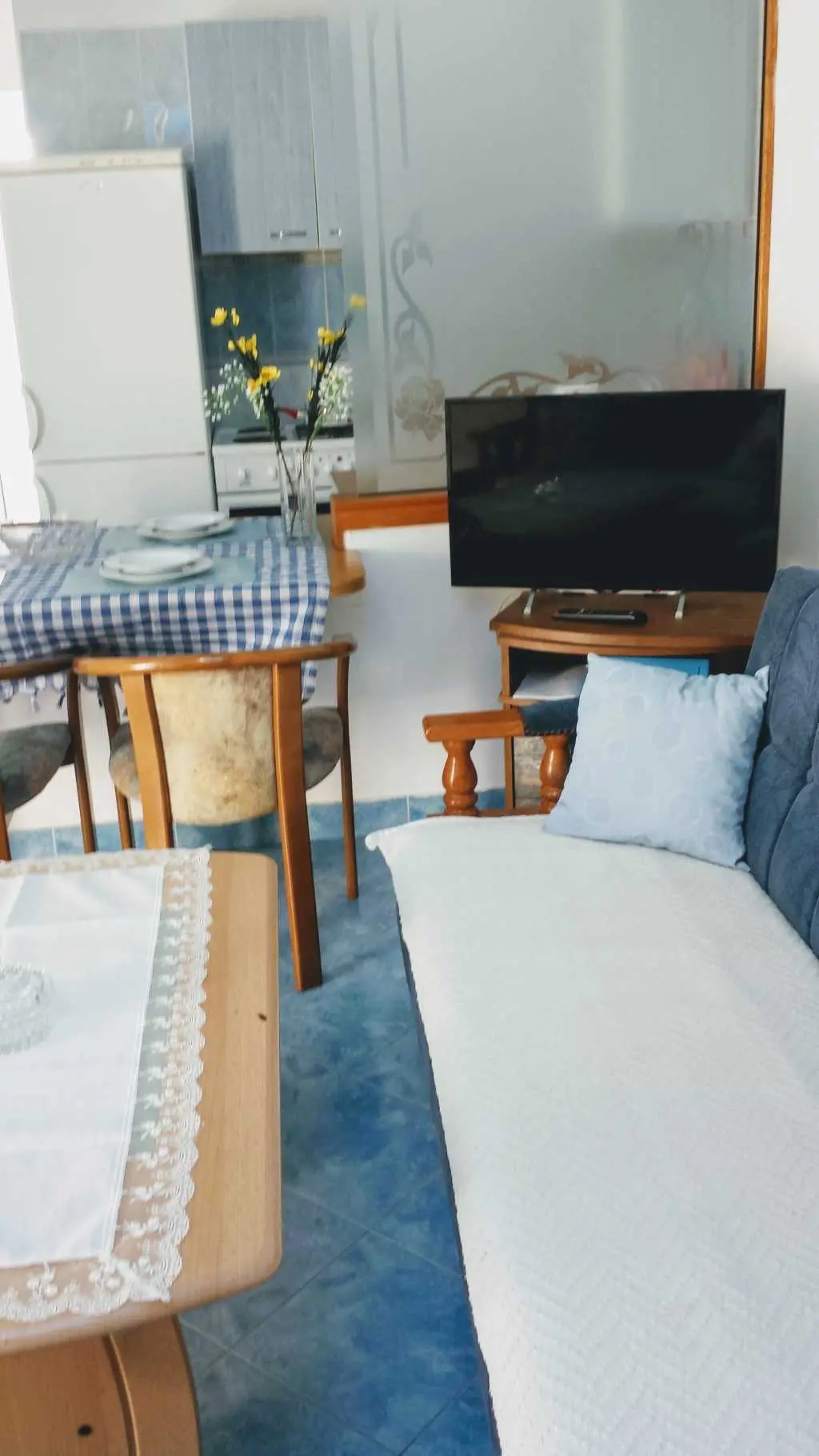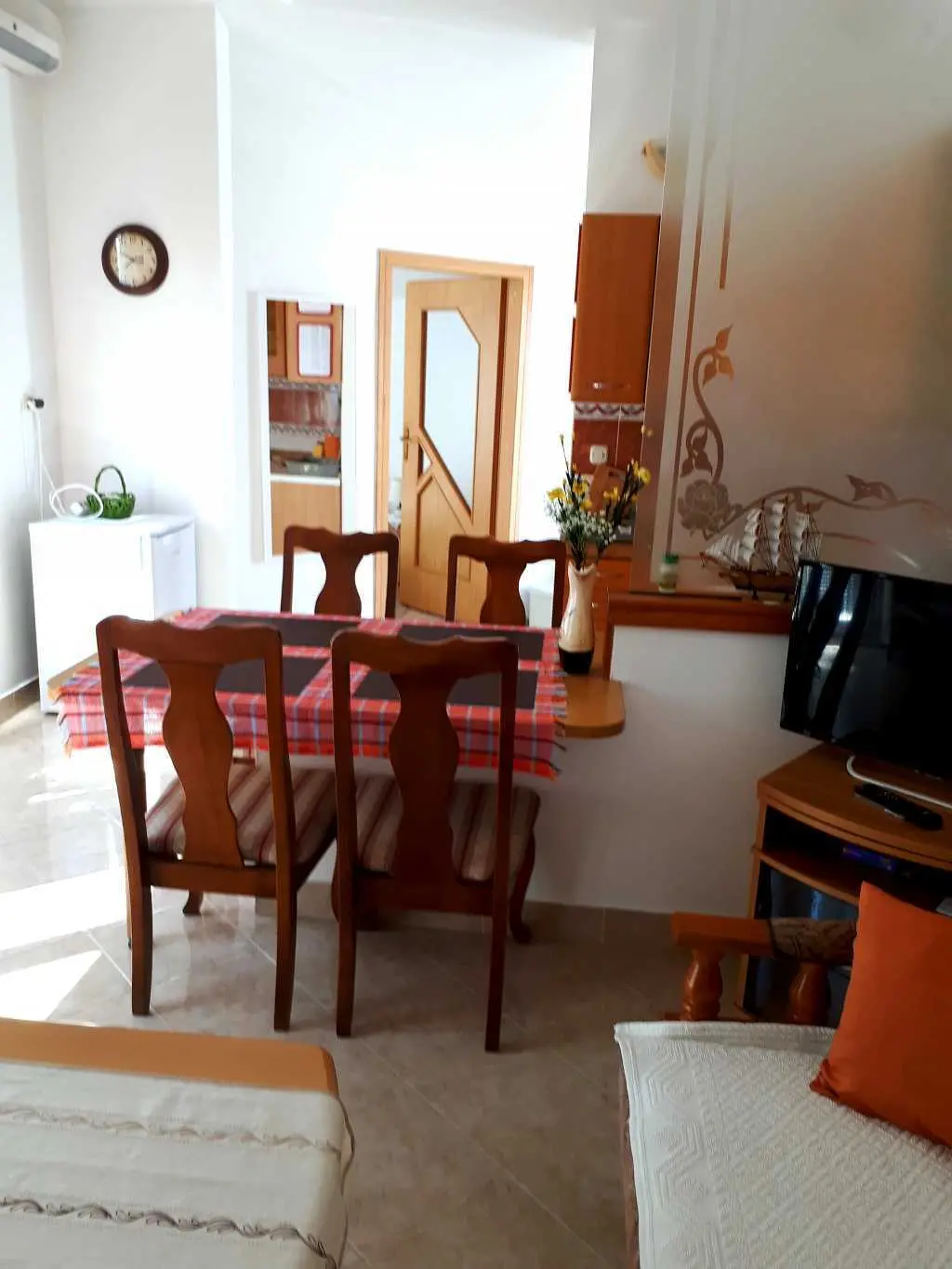 Hus, inte långt från centrum, på en lugn och grön gata, med 2 lägenheter med ett sovrum på bottenvåningen, fullt möblerade för en fyrfamiljsfamilj. En vacker resort för människor som älskar lugn och närhet till havet, men också de som vill ha en aktiv sportsemester.