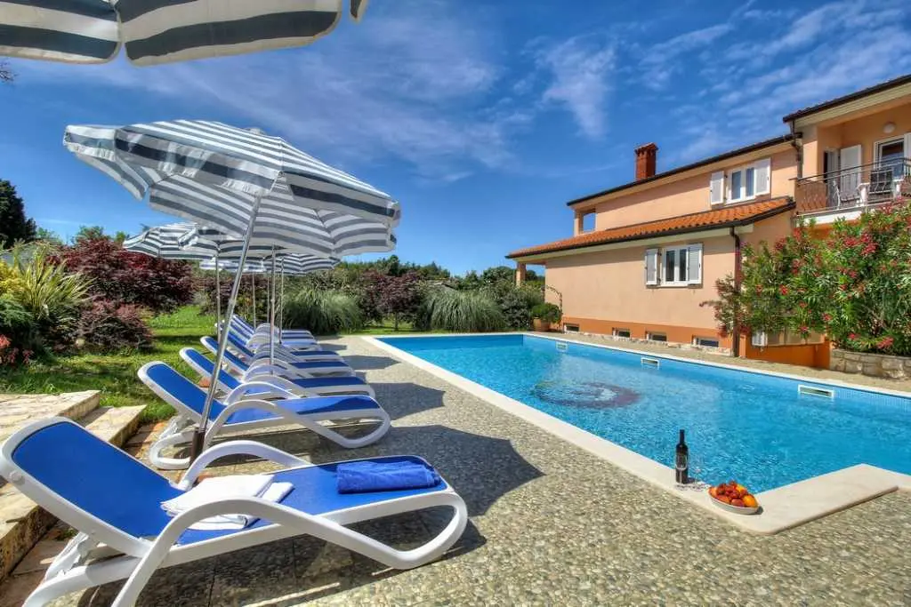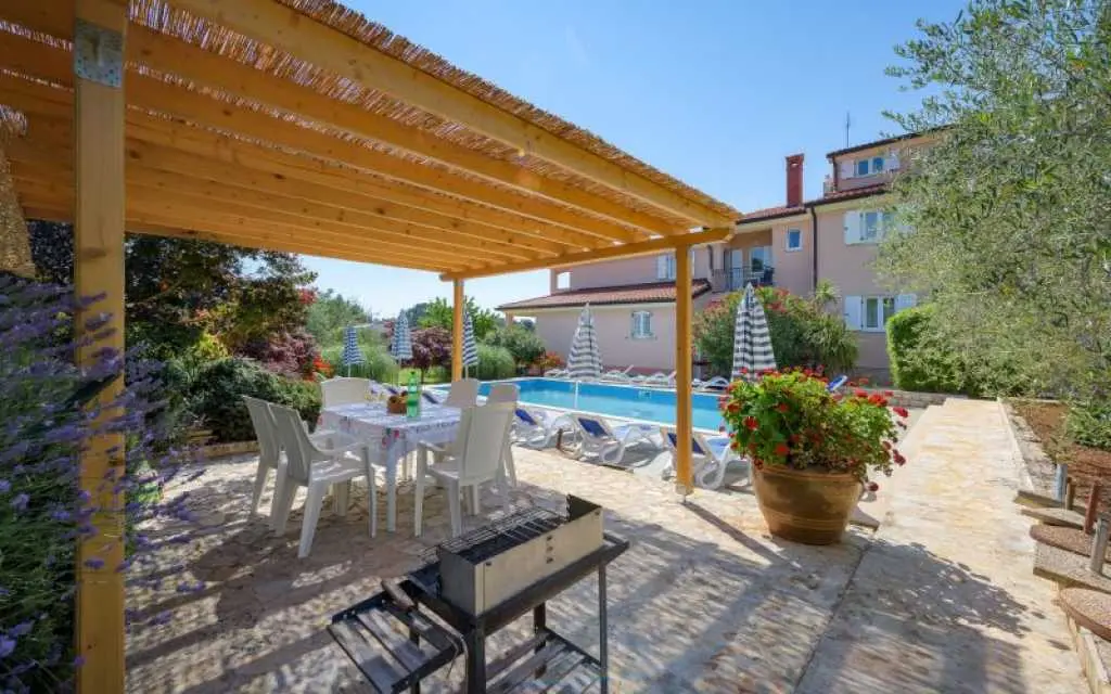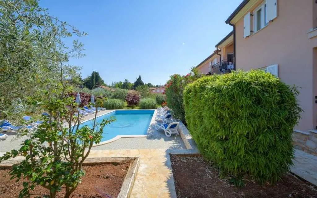 Villa Lara är helt nybyggd. Ett lägenhetshus med en vacker krog och en egen ädel pool. Stranden i Savudrija ligger bara några minuters promenad och kan nås på ett rakt, direkt sätt. Huset ger dig den högsta standarden för indivdual och modern komfort. Alla lägenheter är utrustade med luftkonditionering. För din egen bil finns en skyddad och täckt parkeringsplats. För att uppnå välbefinnande väljs byggmaterial och inredning biokompatibla. Savudrijas centrum ligger mindre än 500 meter bort, där olika butiker finns tillgängliga. Ännu så nära finns det ingen bullerförorening vid Lara-villaen. Det är den perfekta platsen där du kan koppla av, ha roligt och vara en idealisk plats där du kan börja dina utflykter och upptäckter! Sex nya, moderna, generösa och individuella lägenheter med storlekar på 52 kvm och 64 kvm utrustade med all komfort finns tillgängliga för din bekvämlighet. Alla lägenheter har badrum / dusch / toalett, luftkonditionering samt egen balkong eller terrass. För underhållningslös SAT-TV och DSL-internetanslutning i varje lägenhet med lågprissatta fixfält finns tillgängligt. Lägenheterna är utformade för att bekvämt rymma upp till 4 eller 6 personer. Priserna varierar mellan 350 euro och 980 euro per vecka och lägenhet beroende på säsong och den valda storleken på lägenheten. Lägenheten är normalt tillgänglig varje lördag från kl. 4.00. Avgångstid är kl 11.00 på följande lördag om du bokar en vecka. Fråga eller skicka ett e-mail för mer information om pris, tillgänglighet och andra villkor. Njut av din integritet tillsammans med din familj hos oss!
