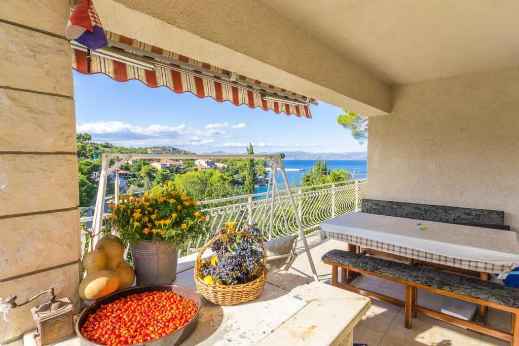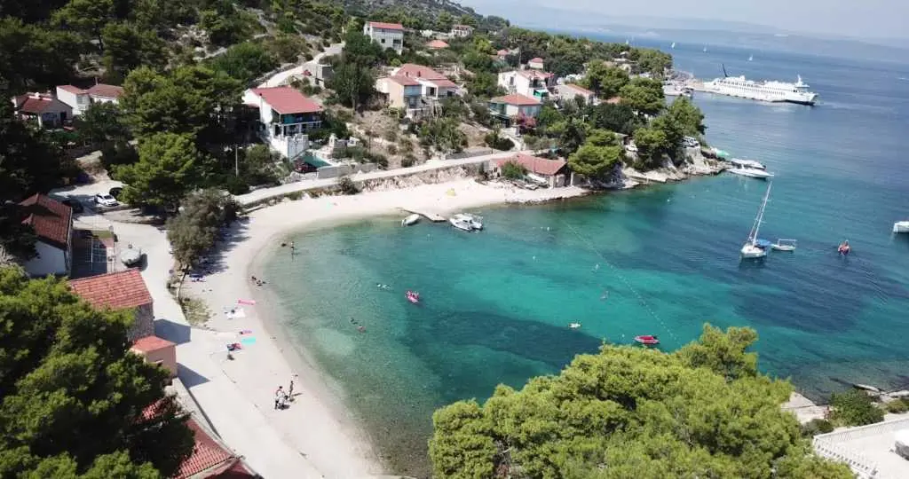 As a family if 4 (2 adults + 2 children), we stayed in the large apartment for 3 weeks. Such a beautiful view! It is very quiet in the evenings and during the morning and day you can sit on the swing on your large terrace with your coffee and watch the ferry, as well as all the activities on the beach. The owners are wonderfully hospitable, always checking to make sure we were happy with the accommodations. Marija made us some desserts a few times as well, which the children enjoyed. The inground pool was gorgeous (with an outdoor shower) that was cleaned daily. The owners take great pride in their home and keeping it looking beautiful! They have their own private driveway and just a one minute walk down to the beautiful Banje Bay beach. Walking to the ferry is quick & easy if you want to spend the day in Split. Just a 10-minute walk. Also there by the ferry is a small shop, restaurant/Cafe, plus gas station. That Cafe has the best pizza on the island!