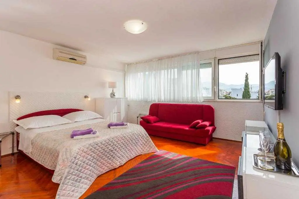 Split Apartment SPALATO **** är en solig lägenhet med loggia där du kan njuta av fantastisk strandutsikt. Läge: Lägenhet belägen i bostadsområdet Split, med namnet Bacvice och Firule, nära sandstränderna Bacvice (blå flagga) gångavstånd 100 m, idrottsorter, tennisbanor, restauranger, marinan Zenta, sandstrand Firule - endast 50 m lägenhet. Vi är också, bara 10 minuters promenad från centrum av Splits, där du kan besöka det berömda Diocletian Palace eller ta en buss eller färja för att utforska längre bort. Lägenhetsytan 60 m2 består av: - 2 separata luftiga sovrum med dubbelsängar och en bäddsoffa (140 X 200), - fullt utrustat kök och matplats med havsutsikt, - badrum med tvättmaskin, gratis handdukar och linne, - parkering gratis framför huset. Lägenheten är utrustad med: - 2 luftkonditioneringsapparater - 2 LCD-TV - Trådlöst internet, gratis - Sänglinne, handdukar, diskar - Tvättmaskin