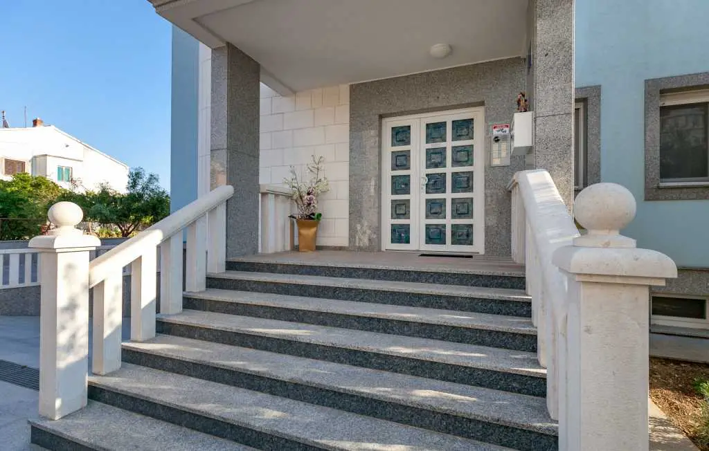 Vårt hus ligger i ett lugnt område och erbjuder trevligt boende för alla sina gäster och det ligger bara 5 minuters gångavstånd från Trogir Center. Trogir centrum, dess gamla kärna ligger på liten ö mellan huvudlandet och ön Ciovo. Det har varit under skydd av UNESCO sedan 1997. Modernt utformade lägenheter A2 + 2, A2 +1 och A2 är välutrustade med alla nödvändigheter du behöver för avslappnad semester. Alla lägenheter har luftkonditionering, alla med TV / SAT och DVD. Lägenheter beskrivning: A2 + 2 lägenhetstyp (51m2) har ett stort vardagsrum med kök och bäddsoffa för två personer, ett sovrum med dubbelsäng, toalett och balkong / terrass (12m2). A2 + 1 lägenhetstyp / studio lägenhet (30m2) har ett vardagsrum med kök, dubbelsäng, utdragbar soffa för en person, toalett och balkong / terrass (6,5m2). A2 lägenhetstyp / studio lägenhet (26m2) har ett vardagsrum med kök, dubbelsäng, toalett och balkong / terrass (6,5m2). Alla våra gäster kan använda grill på gården när de ordnas med ägaren för privata fester eller luncher / middagar till sent på kvällen. För alla gäster är privat parkering säkerställd framför huset.