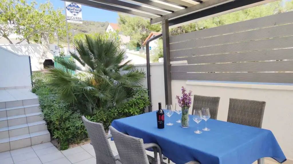 House Riba ligger 100 meter från havet och har 4 lägenheter vardera med egen ingång och en säker parkeringsplats. Lägenheterna på första våningen har en balkong med utsikt över havet, och lägenheterna på bottenvåningen har en rymlig privat uteplats. Alla lägenheter är luftkonditionerade, har tvättmaskin och diskmaskin samt en gemensam grillplats.