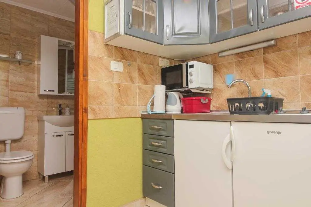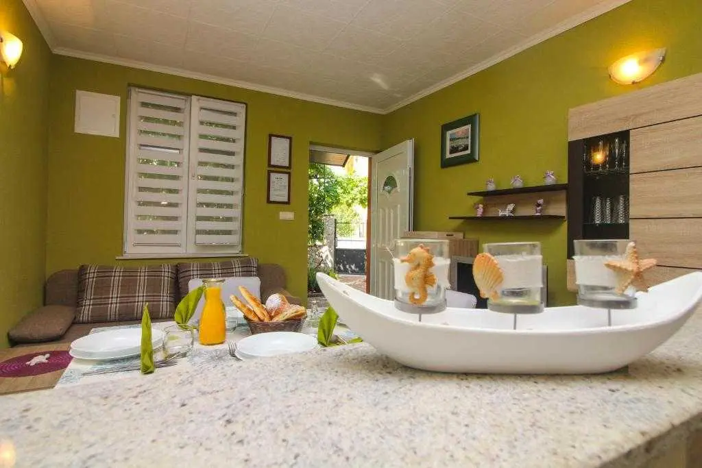 Nyrenoverad lägenhet i en lugn by Zablace nära Sibenik. Anläggningen ligger 300 meter från havet och centrum. I mitten finns restauranger, kaféer och affärer. Bageriet ligger 1 minuters promenad bort. Busstationen ligger tvärs över gatan i lägenheten, lokal buss kör varje timme i centrum av Sibenik. Inom en 20 kilometer lång radie hittar du många attraktioner som: NP Krka, Gamla stan, Fästning, Promenader, Bike Trails och Solaris Tourist Resort. Lägenhet (1) består av vardagsrum med kök och matsal, badrum och sovrum. I vardagsrummet finns en extrasäng för två personer (160x200). Utanför finns en vackert anlagd innergård under den naturliga nyansen av vinstockar och möjligheten att grilla. Lägenhet (2) innehåller allt och lägenhet (1).