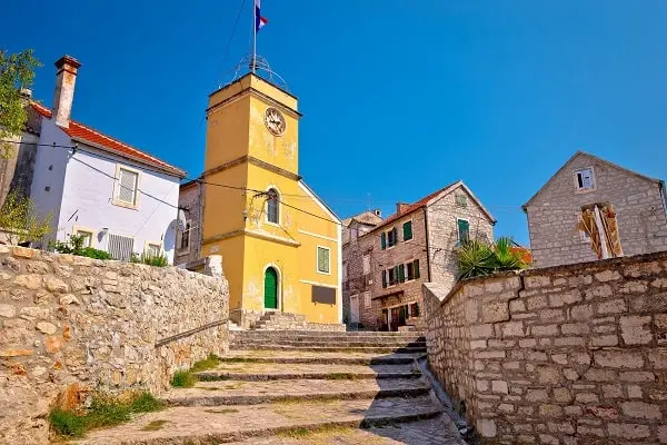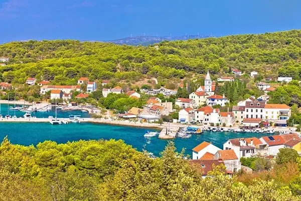 Zlarin är en liten ö i Šibenik skärgård, som ligger 2 km från ingången till Sv. Ante kanal, vid ingången till staden Šibenik. Administrativt hör det till staden Šibenik. Detta är en av de få öarna i Adriatiska havet som inte tillåter biltrafik och säkert erbjuder den en speciell charm. Regelbunden färjetrafik till ön Zlarin kör från Šibenik-hamnen och resan är kort och trevlig och du kan njuta av utsikten över den magnifika fästningen St. Nicholas. Zlarin är också den enda bosättningen på ön och är ett typiskt exempel på en liten dalmatisk stad med smala och gamla stenhus, smala gator och kyrkans distinkta klocktorn. Hela ön har bara ett område som är större än 8 km2, och det mesta av ön är täckt med skogar av cypress, tall, rosmarin, fikon, oliver och andra medelhavsväxter. De inre delarna av ön är obebodda, täckta med tjock skog och buske och kallas med rätta den gröna ön. Zlarin har det verkliga Medelhavsklimatet med cirka 2700 soltimmar per år, vilket gör det till en av de soligaste öarna i Adriatiska havet. På vintern har ön bara 300 invånare, men från maj till oktober ökar befolkningen betydligt på grund av många gäster och turister. Lokala människor i Zlarin har historiskt huvudsakligen varit engagerade, som de flesta öbor, inom jordbruk, fiske och segling. Här är fortfarande odlade oliver, fikon och andra Medelhavskulturer som fortfarande kan ses i alla delar av ön. Nyligen har turism utvecklats och lokalbefolkningen erbjuder lägenheter och rum i sina privata hem. Zlarin är känd för bearbetning och jakt på röda koraller som finns på ön sedan 1500-talet. Förmågan att bearbeta koraller på traditionellt sätt vårdas fram till idag, och här kan du köpa originalprodukter från koraller i flera souvenirbutiker. Zlarin har vackra små stenstränder och kristallklart vatten. Oberörd natur, frodig grönska och kristallklart hav kommer att glädja alla som försöker fly från stadens buller och liv. Vi inbjuder dig att besöka denna oas av lugn och ro. Kontakta direkt ägarna av lägenheter, spara upp till 40% och spendera en oförglömlig semester. Prisvärd privat boende på ön Zlarin. Välkommen till Zlarin!