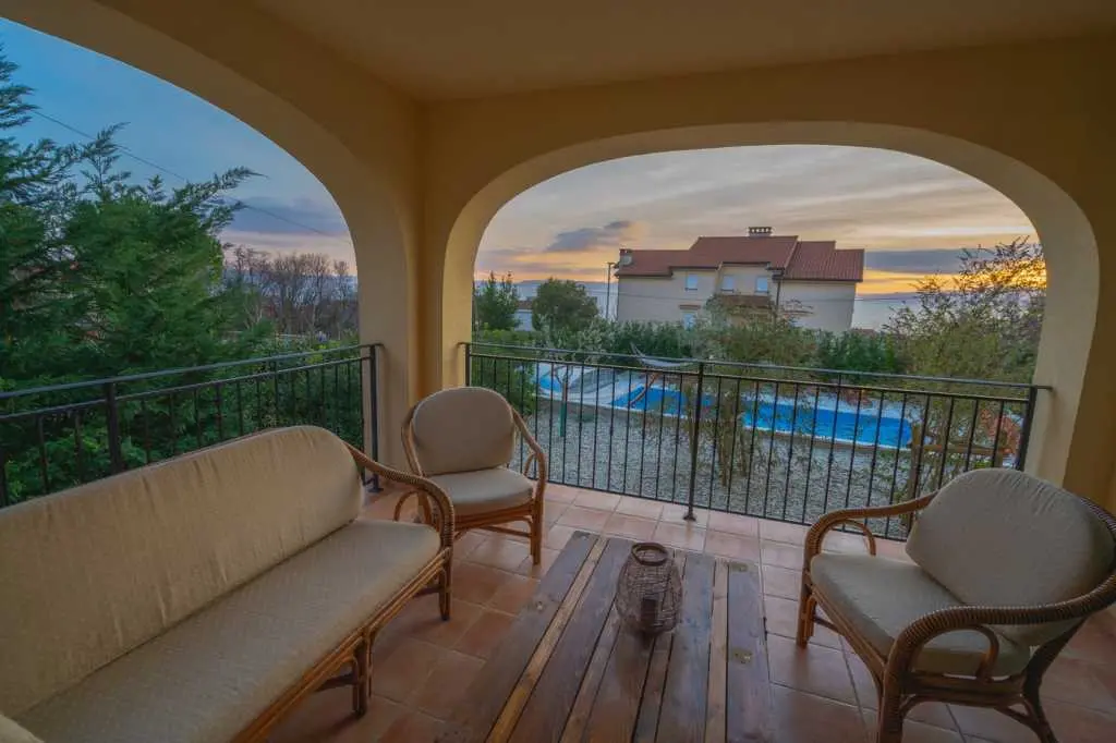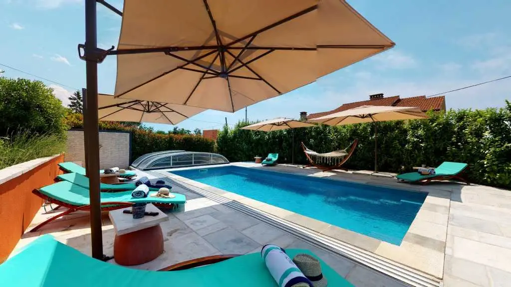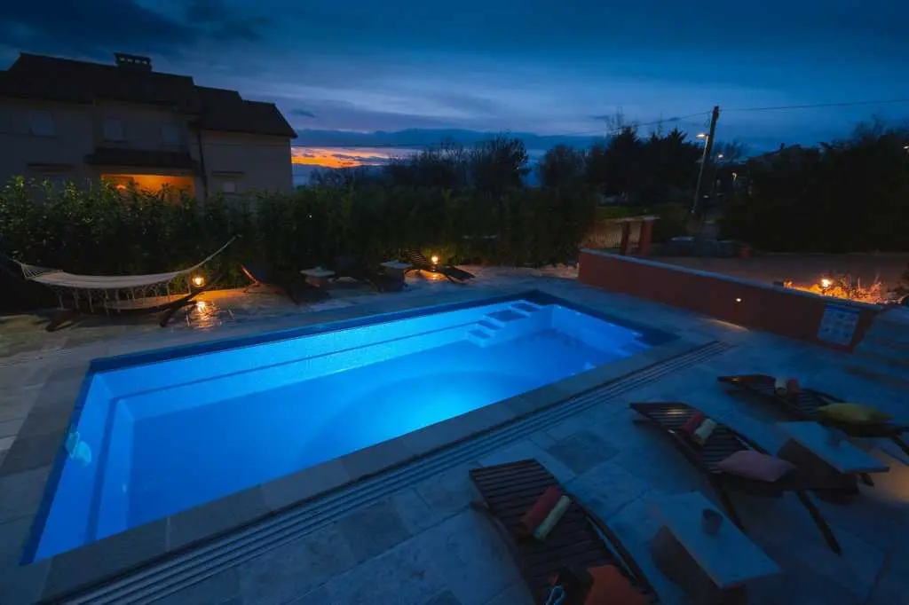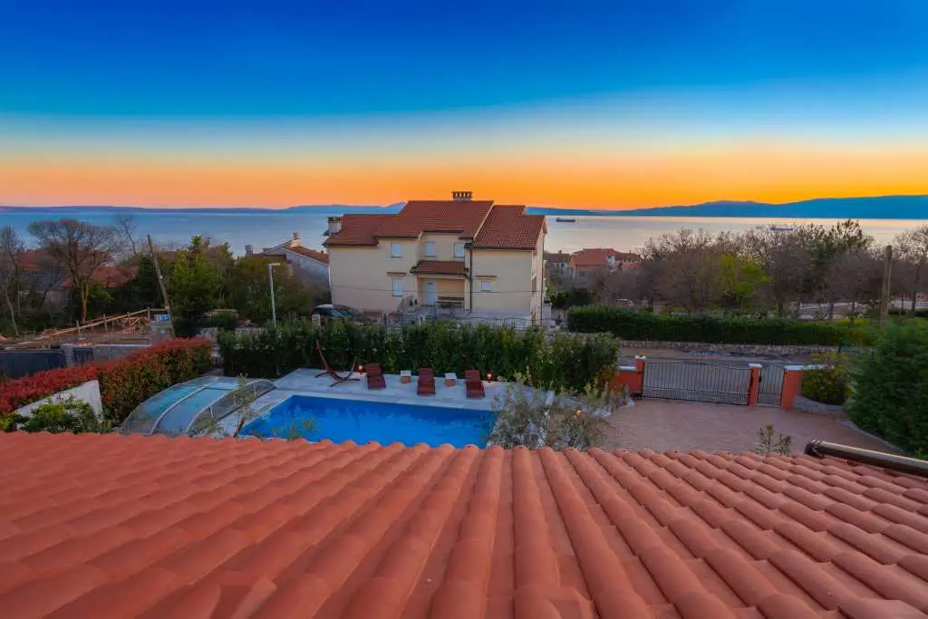 Villa Oasis Kostrena ligger i Kostrena, nära Rijeka. Villan har 186 m2 uppdelad i två våningar. Bottenvåningen har ett modernt kök med alla apparater och en matplats, ett stort vardagsrum (TV, HiFi, Nintendo Wii, Play Station) med tillgång till terrassen möblerad med trädgårdsmöbler, gym, toalett, tvättstuga och ett sovrum med badrum (badkar och dusch åtskilda). Den första våningen har två sovrum med badrum. Alla rum är utrustade med AC-enheter, TV-apparater med Netflix-åtkomst, ett skönhetshörn och king size-sängar. Wi-Fi är gratis. Poolområde - 8x4 m täckt pool med saltvatten och motström värms upp. Sundeck är utrustat med lounger, hängmattor och soldusch. Grillen och ett stort handgjort bord för uteservering finns också tillgängligt. Parkeringsplatser finns tillgängliga på fastigheten.