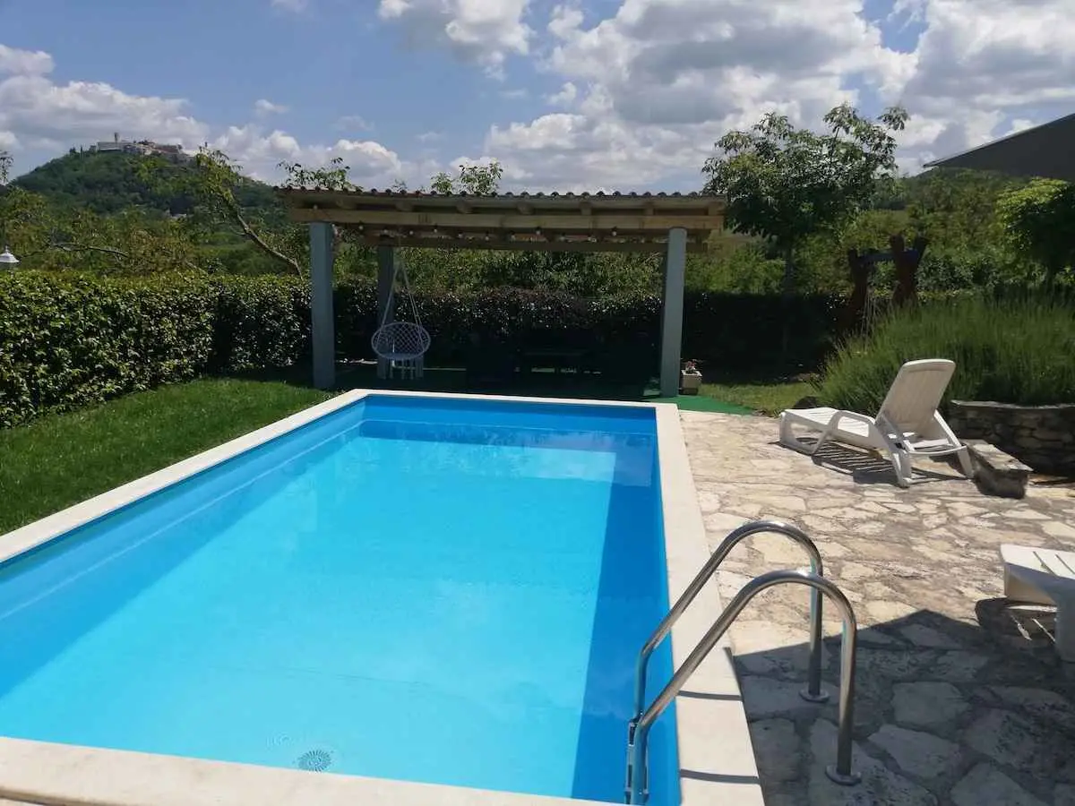 Huset ligger i centrala Istrien där, bara 2,5 km från staden Motovun. Huset ligger vid foten av Motovun, omgiven av vingårdar, som ger en fantastisk utsikt över Motovun. På första och andra våningen finns rum. Alla rum har eget badrum. På bottenvåningen finns ett kök och vardagsrum. Vid framsidan av huset finns en stor terrass .. Utomhuspool på 24 m2. Parkering finns på paketet. Med en lugn semester, erbjuder alla naturälskare i den här inställningsevenemanget olika möjligheter till aktiv semester. För att göra detta till ett bra erbjudande ännu bättre, ger dina värdar, familjen Valenta dig en rabattkupong med 10% rabatt i restaurangen och vinbutiken i mitten av Motovun ..