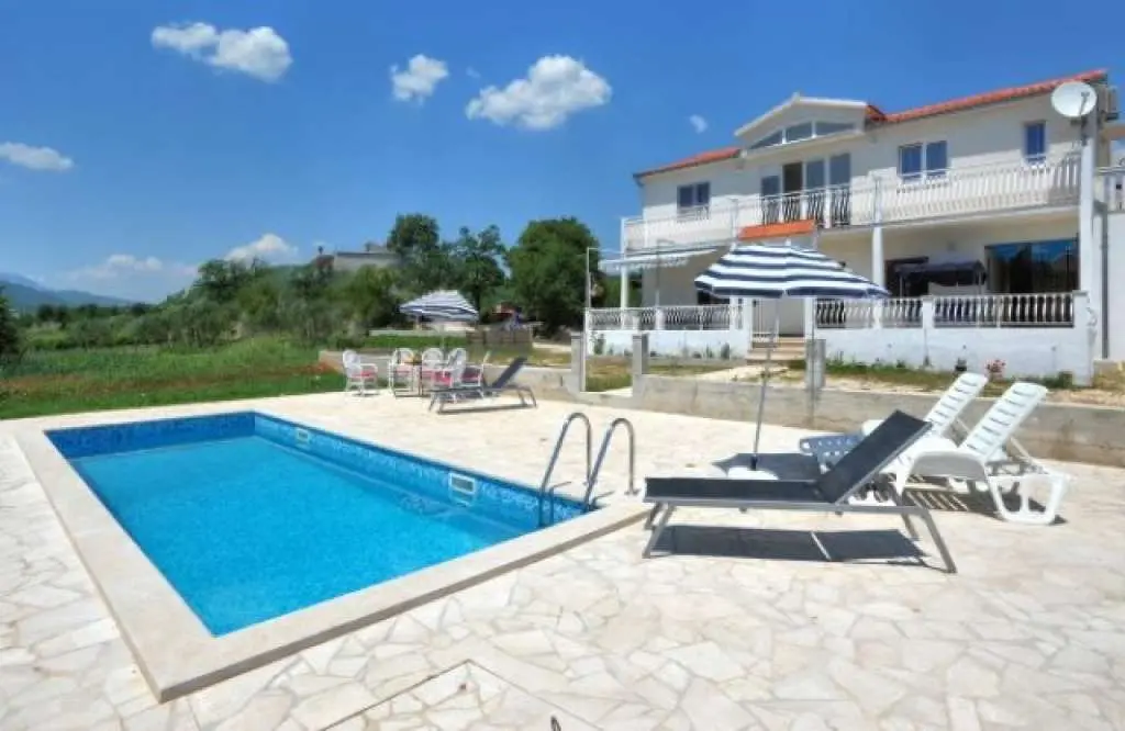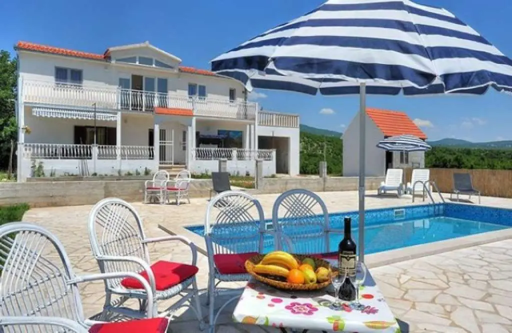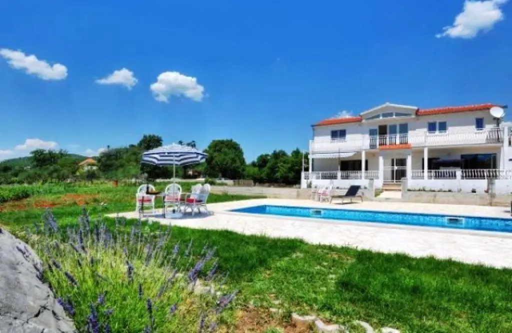 Det rymliga och enkelt inredda fritidshuset ligger i det dalmatiska inlandet från stress och rörelse. På en stor gård framför huset finns en gräsmatta med en pool. Huset ligger nära floden Cetina och i närheten av den vackra privata stranden. Nära huset börjar och forsränning på flodspåret passar alla åldrar och barn. Bottenvåningen har ett stort kök med rymlig matsal för mysiga möten med två sovrum. På övervåningen finns ett stort och rymligt vardagsrum och en rymlig terrass med passform med tre sovrum. Huset är mest besökta av familjer med barn eller en större grupp vänner.