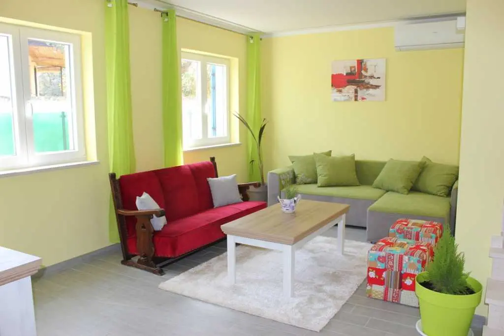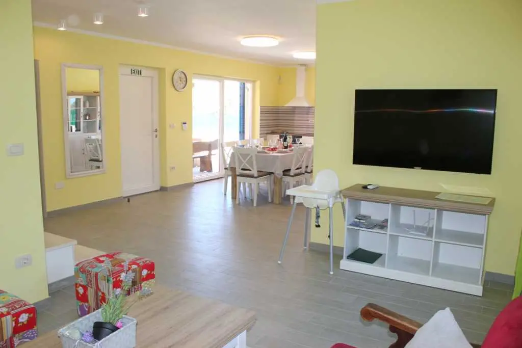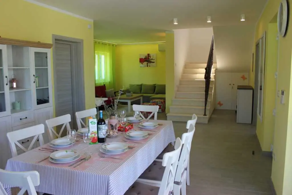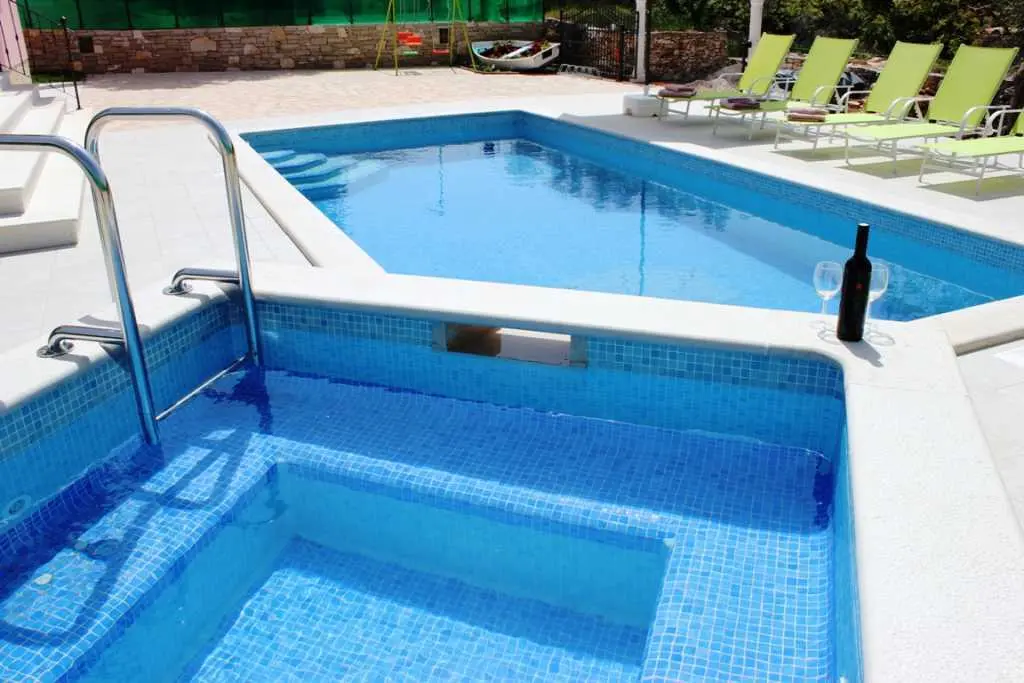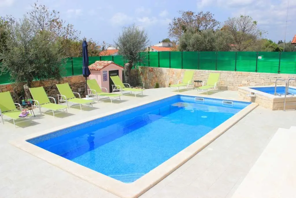 Villa Nikolas 2 ligger i den lilla byn Peroj, 2 km från Fažana och Vodnjan och 7 km från staden Pula. Byn Peroj är perfekt för en lugn semester och har naturliga stränder som är steniga och steniga. På sommaren finns det olika festivaler med lokala specialiteter och en teater för barn. Hus Nikolas 2 är en ny vila med havsutsikt och 1 000 m² stor trädgård med pool och jacuzzi. Detta hus har 4 sovrum, 1 vardagsrum med kök, 4 badrum, 1 WC, 4 terrass, grill, gratis parkering, TV och wi-fi, luftkonditionering. Avstånd från havet och stenstranden till fots är 350 m. Om du letar efter en härlig, lugn plats i hjärtat av naturen nära havet kom och besök vår plats. Du kommer att gilla det!! Återbetalningsbar deposition vid skada - 500 Eur 1 hund är välkommen - på begäran